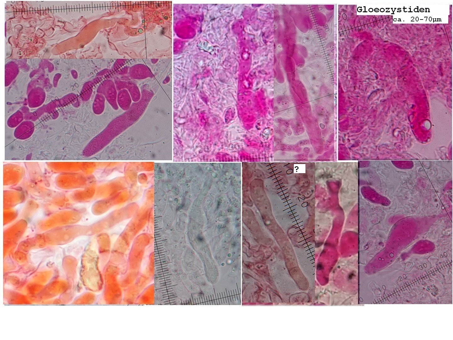 *Gloeozystiden ca. 20-70 x 4-10µm waren eher spärlich vorhanden und schlecht differenzierbar. Am besten konnte ich sie noch in Phloxin und Kongo sehen (Exsikkat).