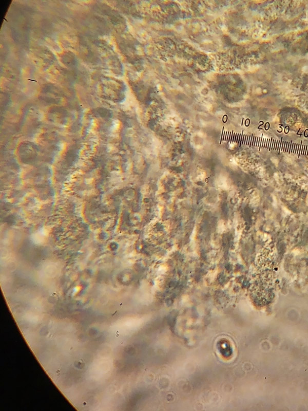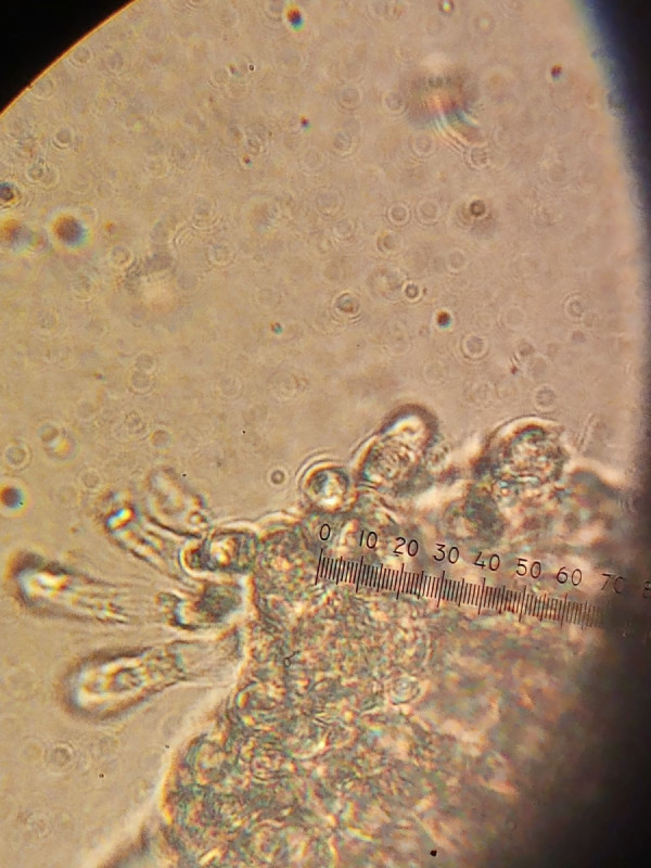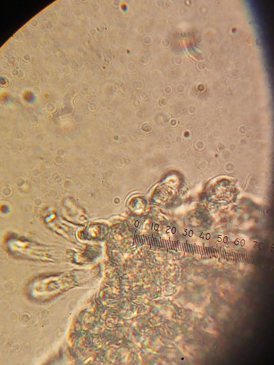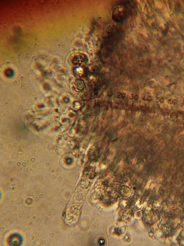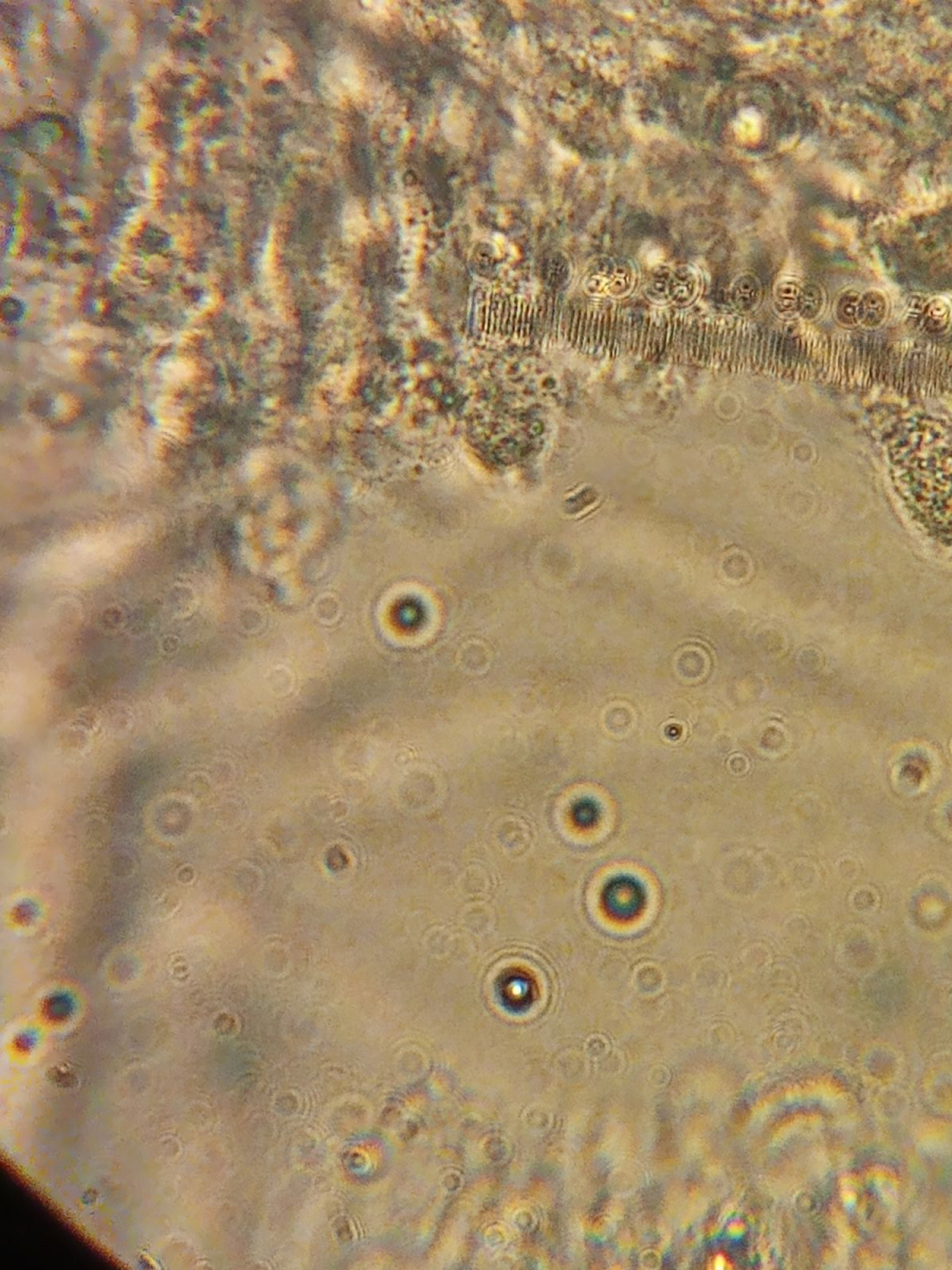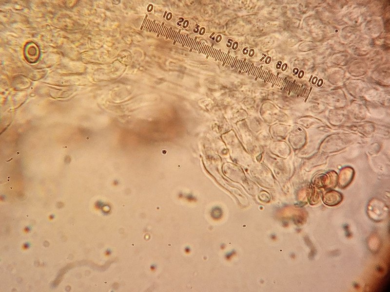 Weder beim Ritterling noch beim Rasling konnte ich ich reife Sporen finden. Ich glaube, die Präparate hätte ich noch besser zerzutzeln können. Es ist alles immer noch etwas zu kompakt. boccaccio würde sagen: da liegt gefühlt der halbe Pilz unter dem Mikro :) .