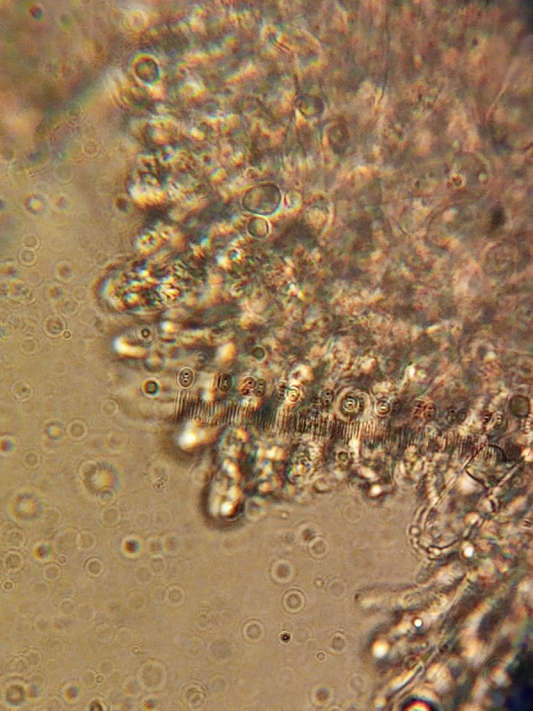 Ostern bedeutet arbeitsfrei und damit etwas Zeit für dies und das. Ich konnte gestern im Park ein paar bekannte Pilze finden, die ich wenigstens auf Gattungsebene einordnen kann. Eine gute Gelegenheit, um das Mikroskop nochmal auszupacken. Mögliche Färbemittel und Grundchemikalien stehen noch im Mykoshop, sind aber bestellt. Einen flüchtigen Blick in die Literatur zur Mikroskopie konnte ich werfen. Ich habe mich zunächst auf die Lamellenschneiden in Wasser beschränkt. Tipps zur Einstellung der Blende habe ich versucht umzusetzen.