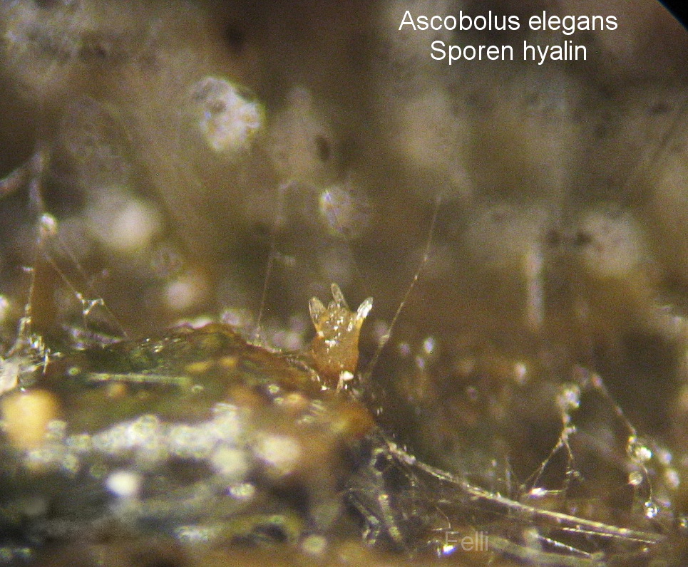 Wieder Ascobolus elegans -eigentlich wollte ich die Kurzsporigkeit vom letzten Fund überprüfen - stattdessen gab es eine hyalinsporige Version von A. elegans.