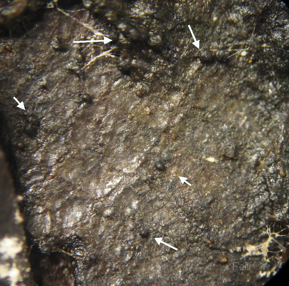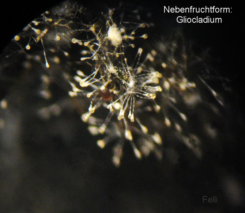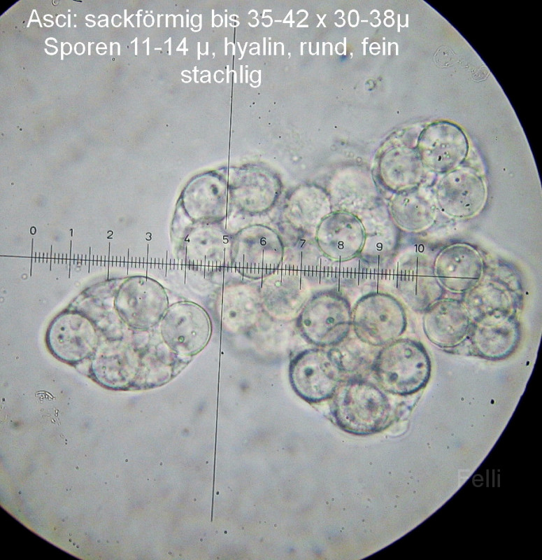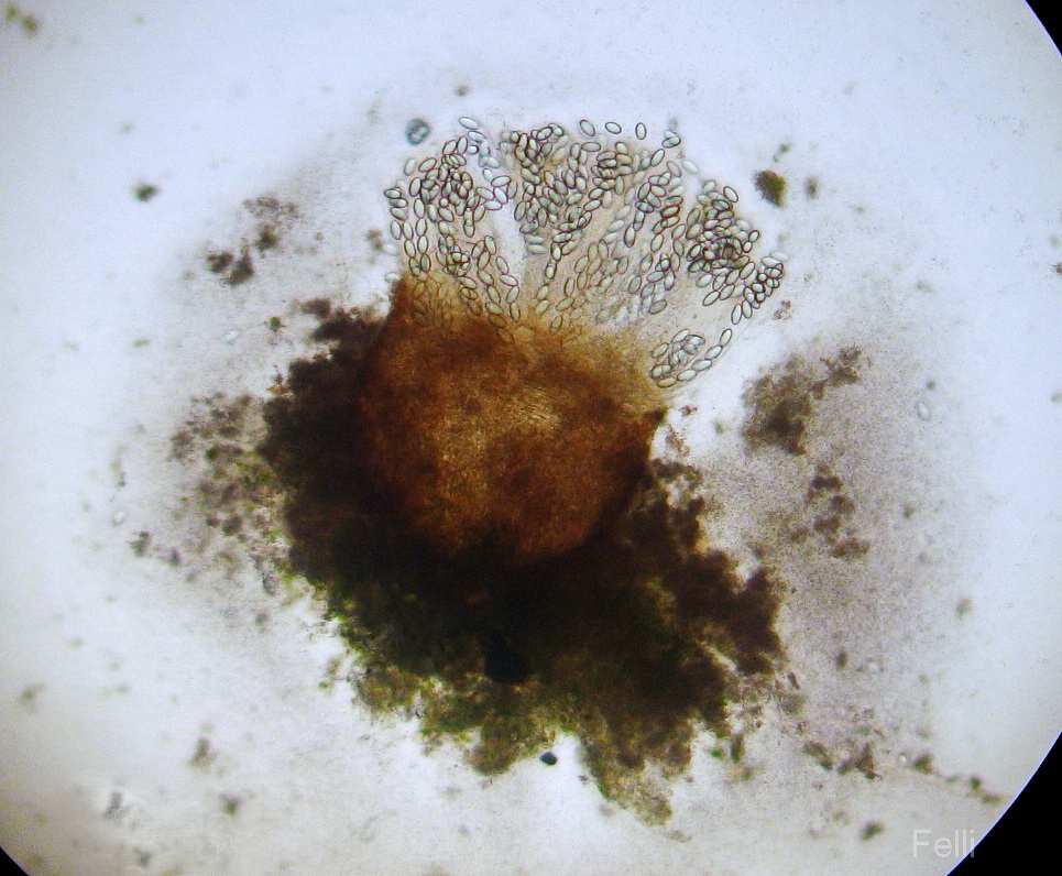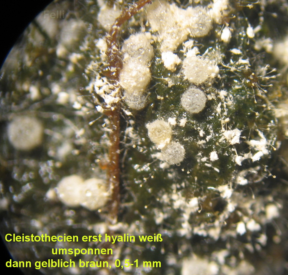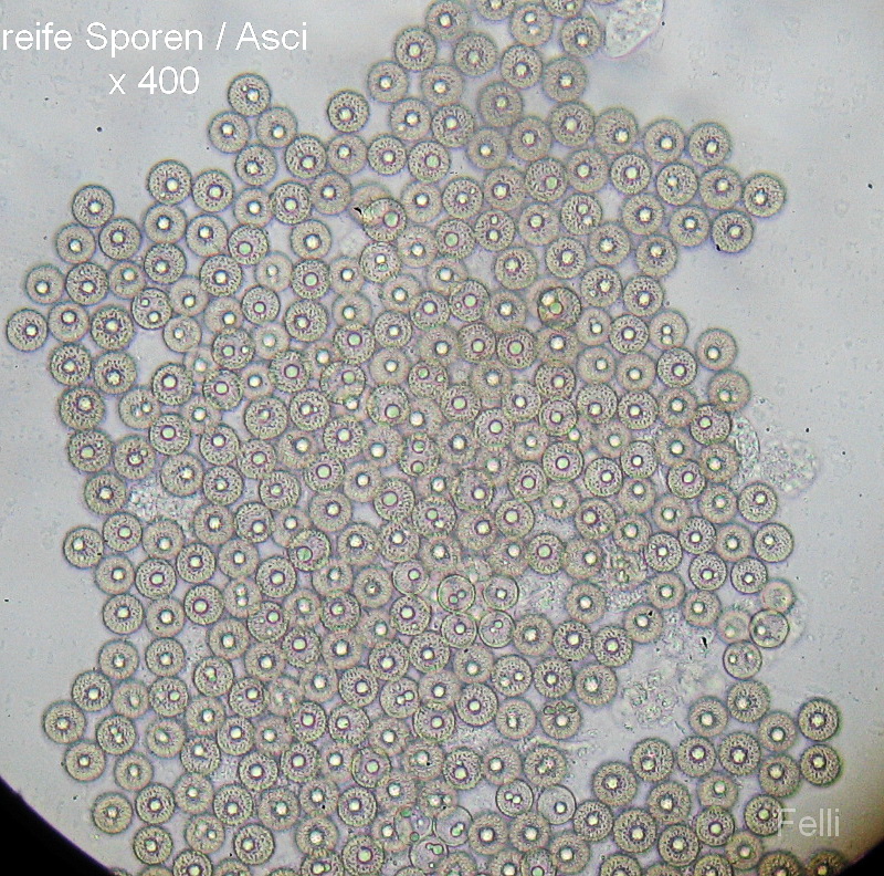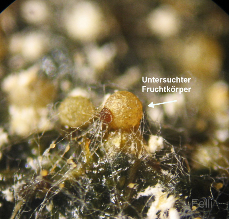 hat mich anfangs genarrt, ich dachte Sclerotien vor mir zu haben, als ich eine kleine weißbesponne Kugel unterm Mikro hatte. Jetzt, 1 Woche später, sind die weißen Kugeln nachgedunkelt und nun hellbräunlich, und reif.