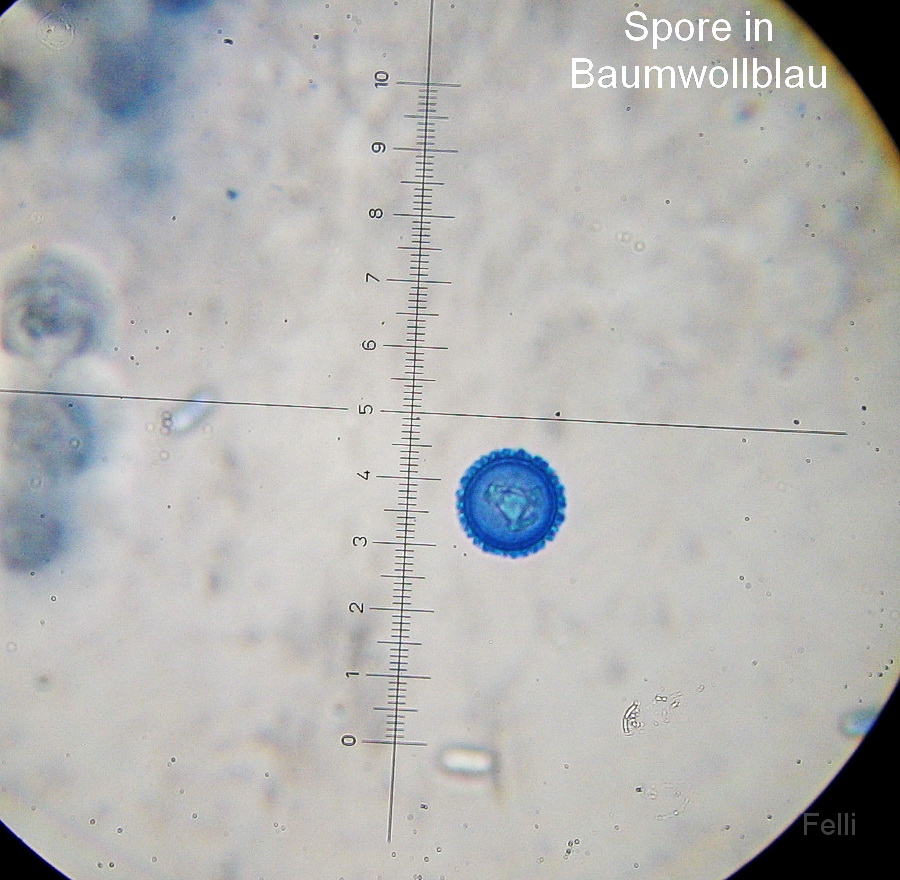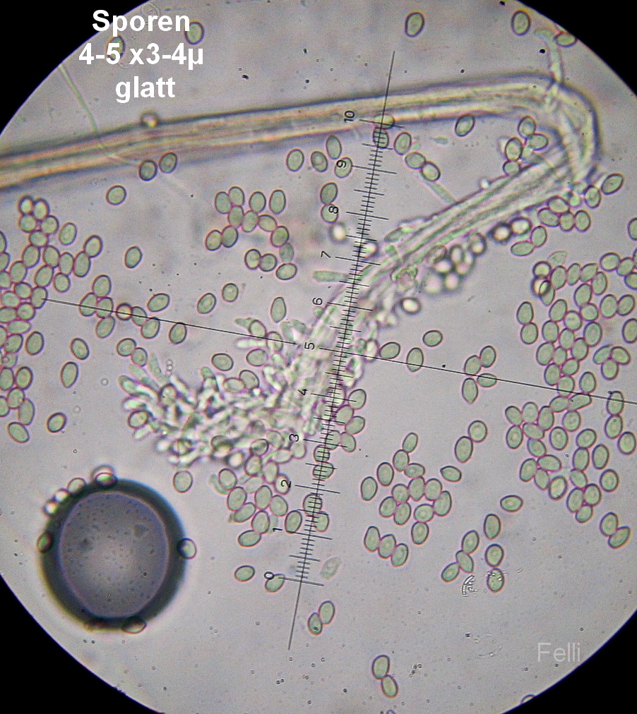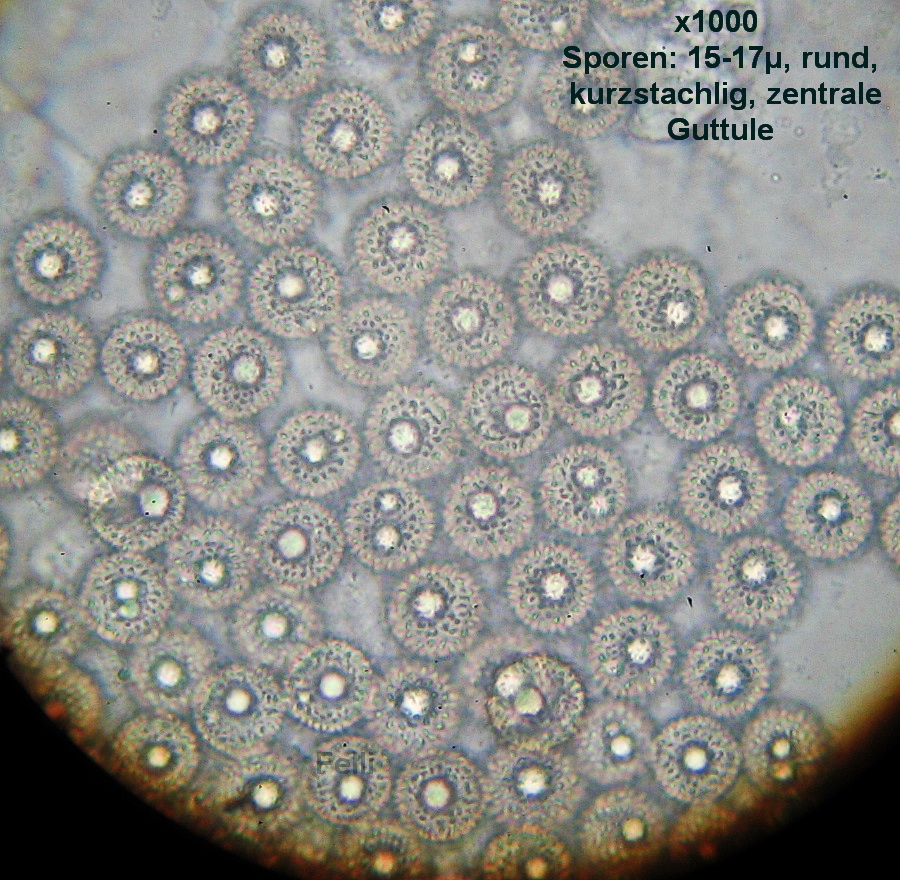 Sporen erst hyalin dann gelb-bräunlich mit kleinen Guttulen und 1 Keimporus