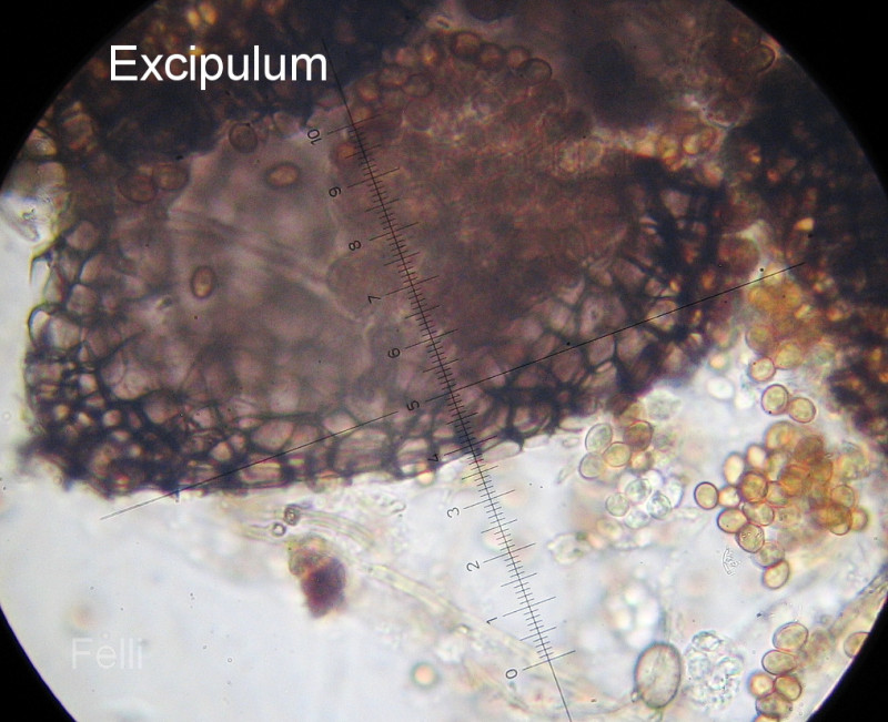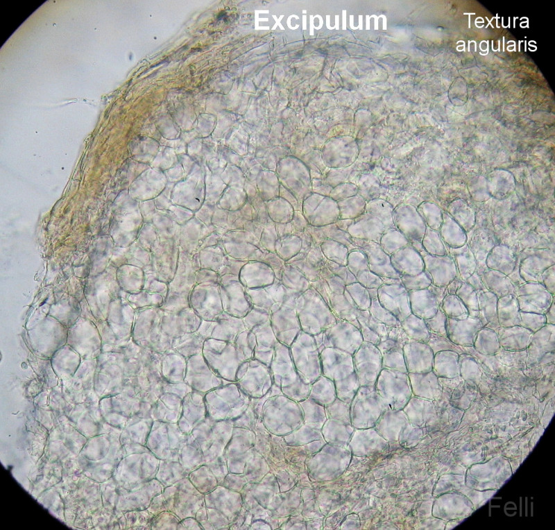 Das Excipulum aus Textura angularis mit violetten Tönen