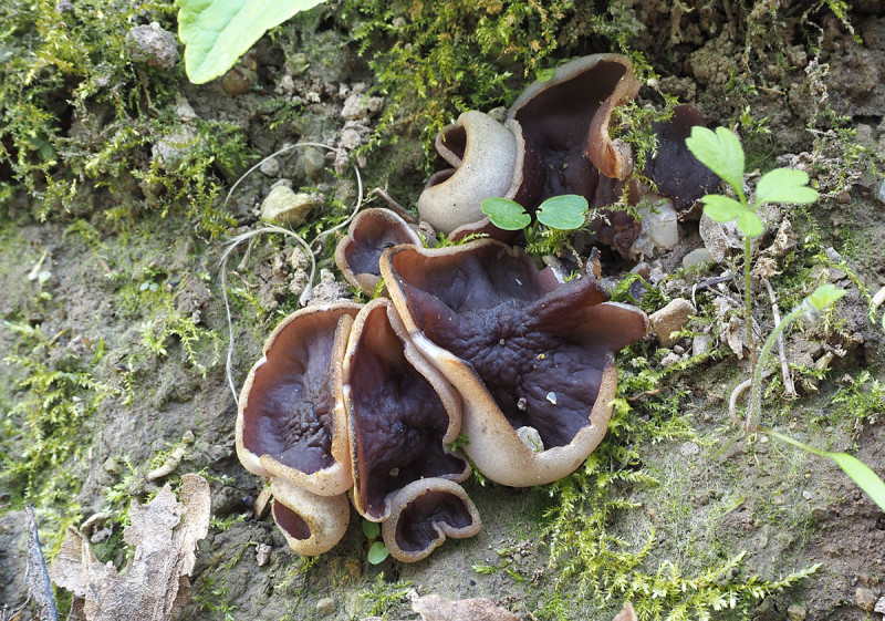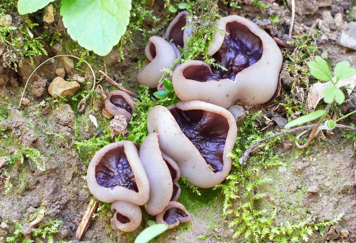 Dafür zeigte sich an ähnlichem Standort unter einer Esche Geoscypha ampelina (Syn.: Peziza queletii), gefunden am 6.April. Standort war ein feuchter, nordexponierter, abgesenkter Weg mit Primula elatior.