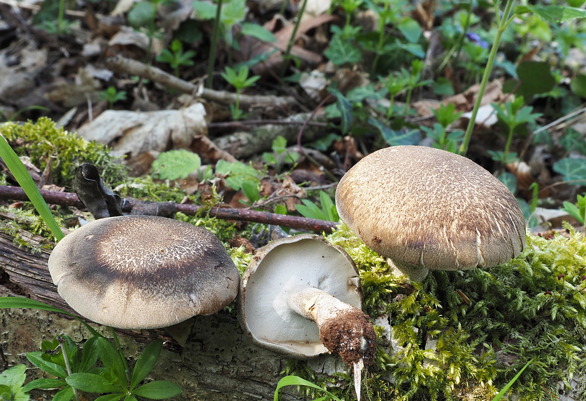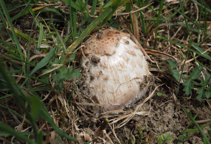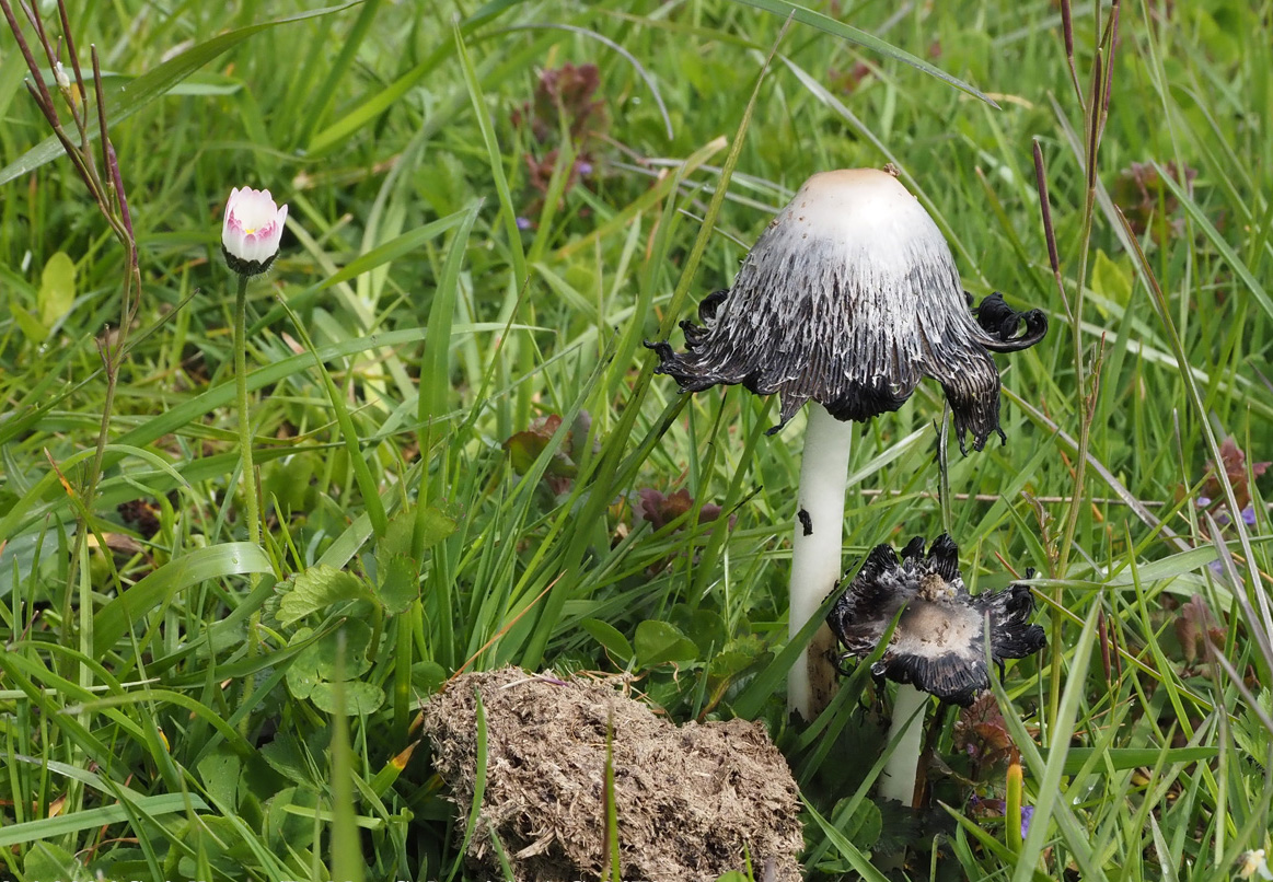 Als Beifang wuchs auf der gegenüber liegenden mit Kirschbäumen bestandenen Viehweide Coprinopsis macrocephala, der u.a. an den großen Sporen (16-19 x 8-10) mit zentralem Keimporus und der hyphigen Huthaut erkannt werden kann. Substrat war mit der Grasnarbe vermengter Mist.