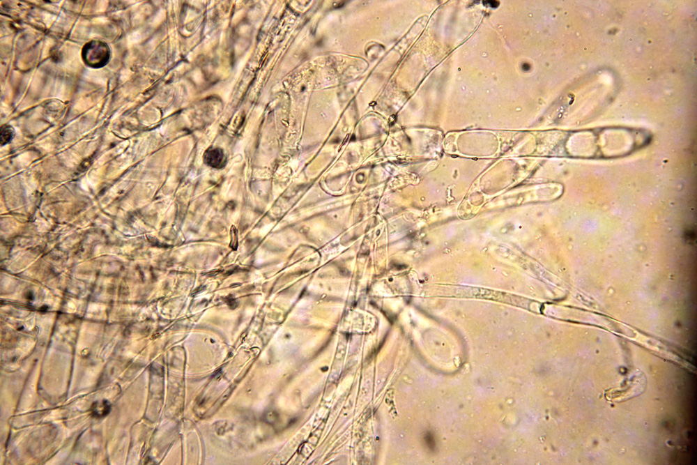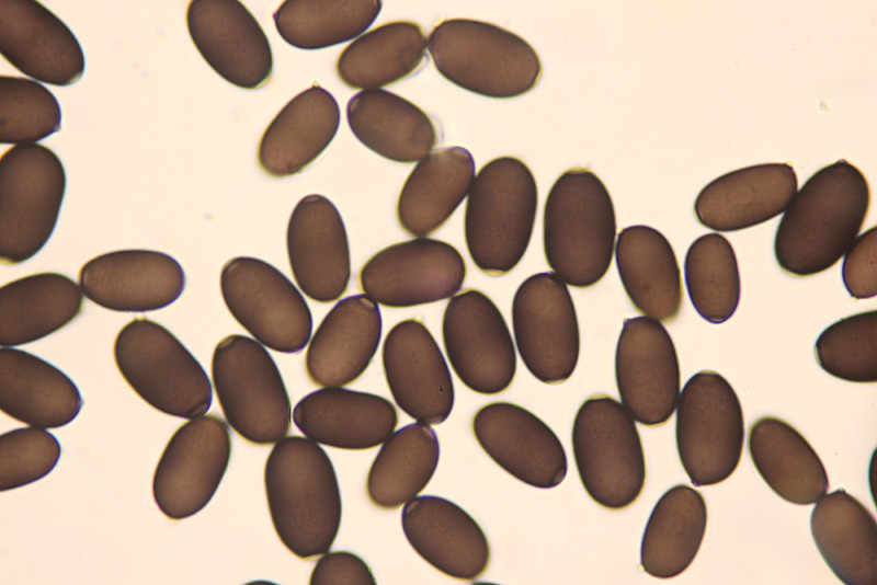 Nur aus Neugierde: Mit welchem Schlüssel hast du den Fund denn hier bestimmt? Nach Melzer wären die Sporen "Medium-sized to large. Sp. 12-17 x 7,5-10 μm", was ja hier doch recht gut passen würde. Ich hab aber zu dieser Art auch noch abweichendere Angaben, was die Sporen betrifft, halte mich da aber zunächst gern an Melzer.