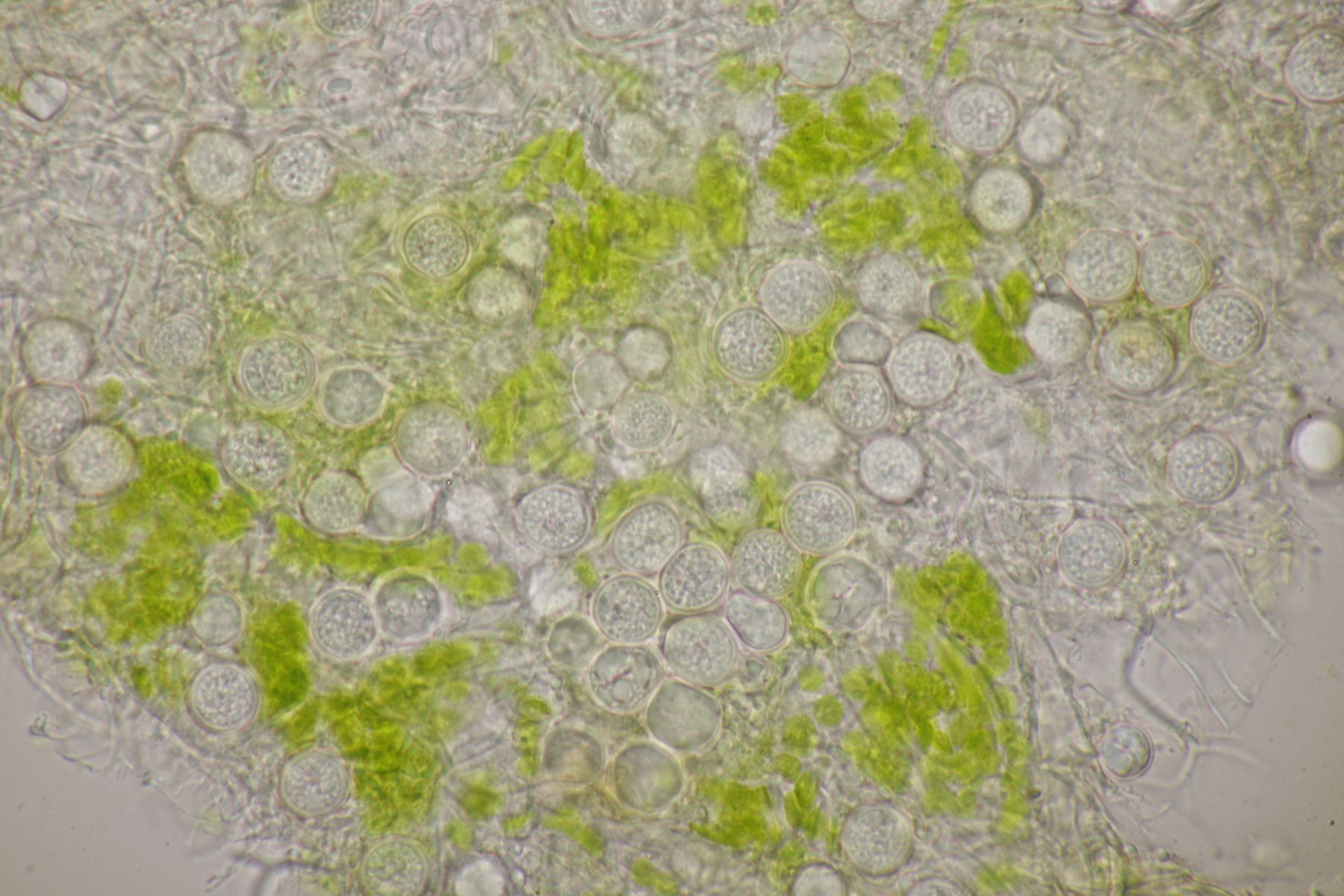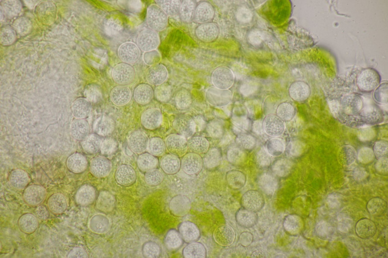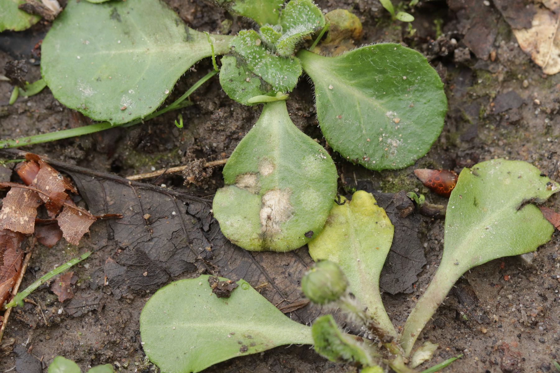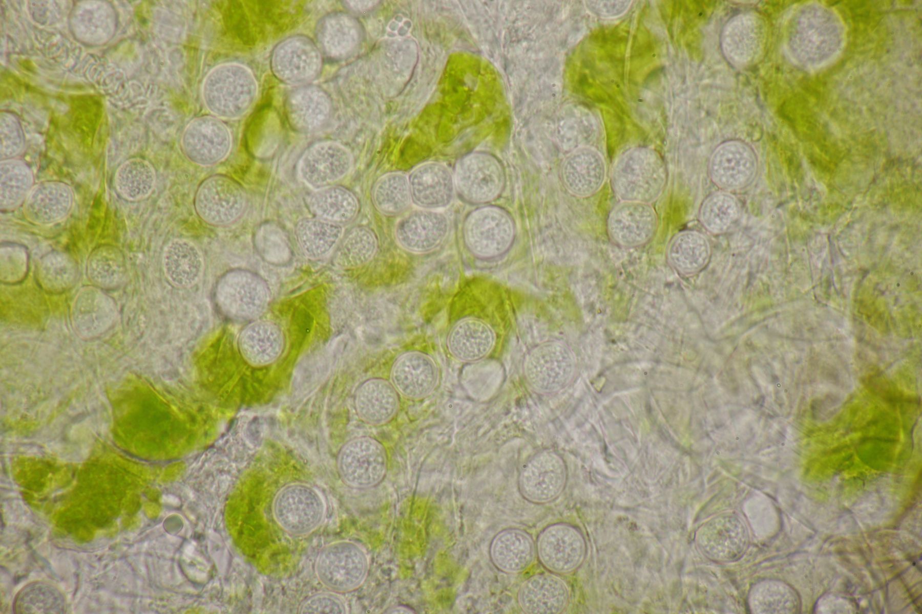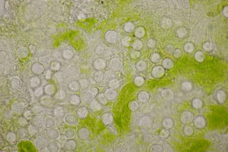 bei der letzten APR-Exkursion am Hohenstein in Witten konnten wir an bekannter Stelle wieder mal den Brandpilz Entyloma bellidis auf Bellis perennis finden. Der Pilz bildet helle Blattflecken und ist im Winterhalbjahr nicht selten. Verwechslungsgefahr besteht mit Protomycopsis bellidis, einem Wucherling, der ebenfalls helle Blattflecken verursacht. Zur Unterscheidung sollte man sicherheitshalber immer einmal kurz reinmikroskopieren. Beim Entyloma finden sich Brandsporen mit Durchmessern um 10 µm, beim Wucherling ascogone Zellen mit Durchmessern um 40 µm.