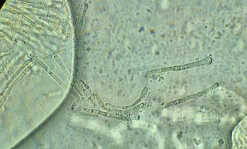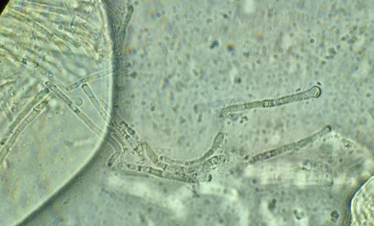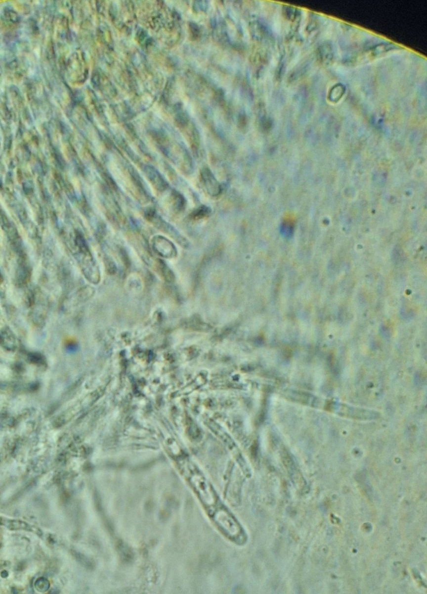 Wasser. Die Mikrobilder ließen mich etwas ratlos zurück. Asci erst mal nicht zu sehen, sporen auch nicht. Paraphysen kopfig.