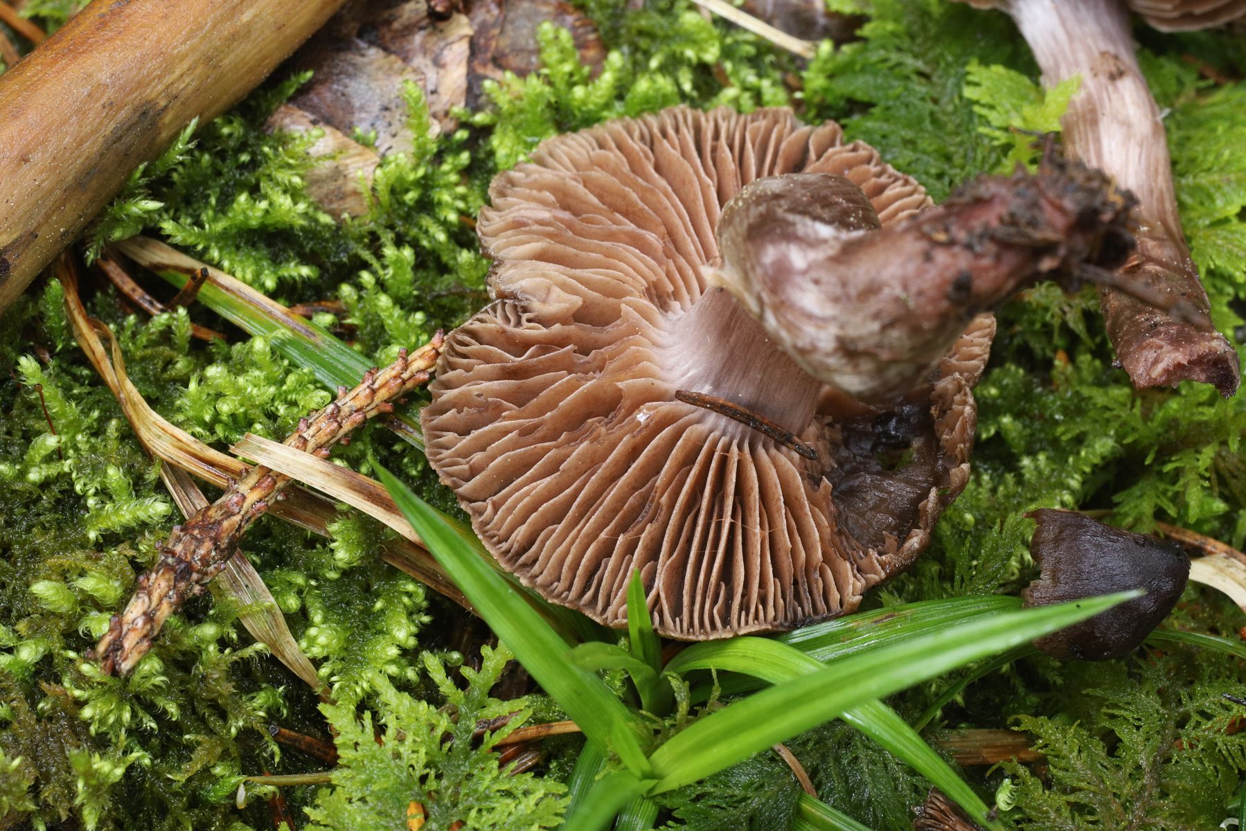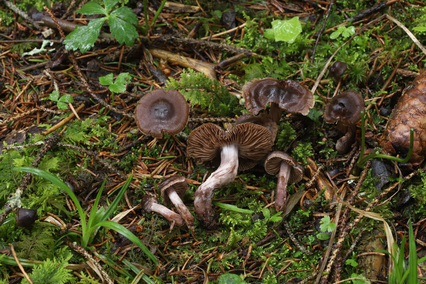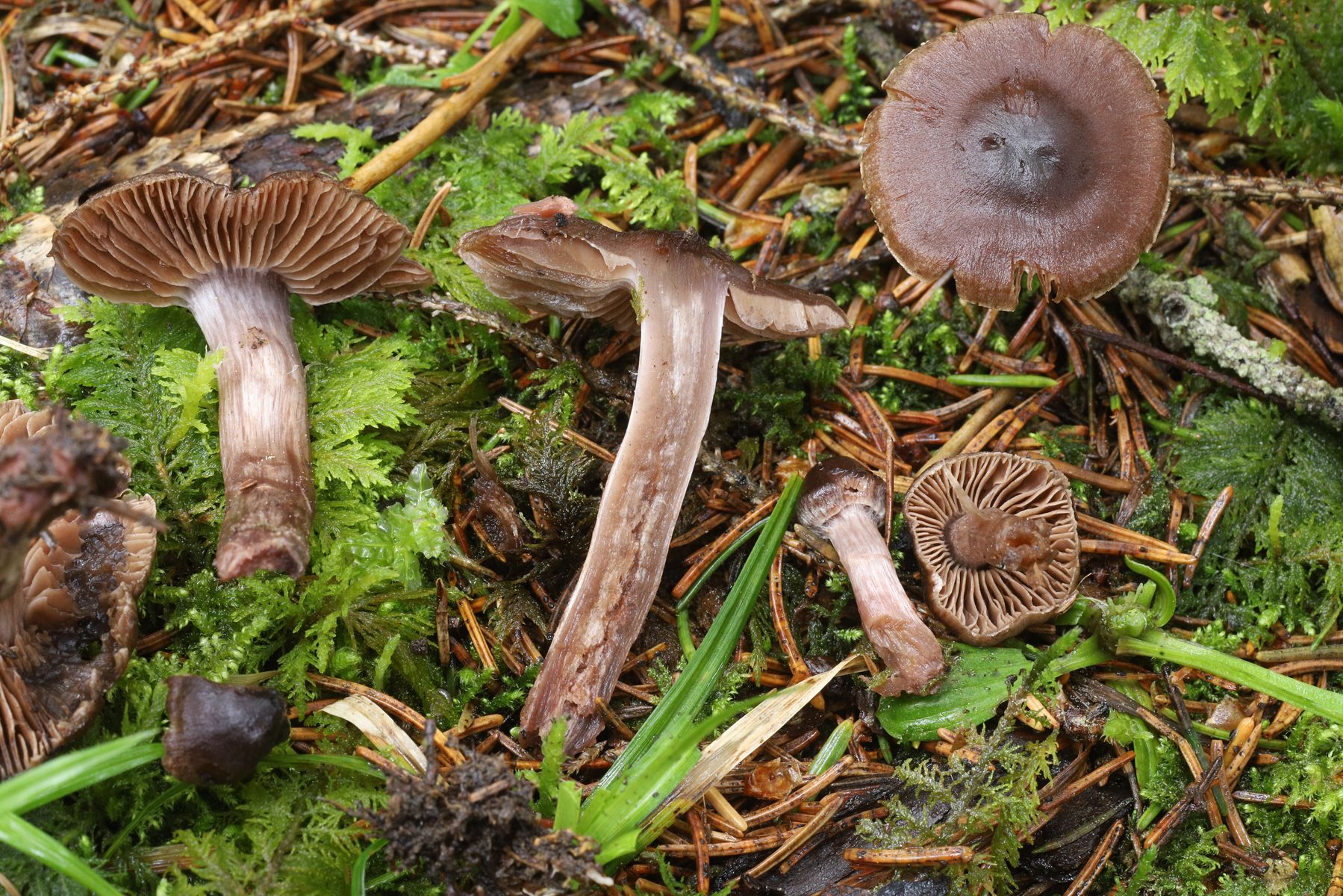 Zum Schluß fand ich noch ein paar Rosastielige Wasserköpfe denen ich den provisorischen Namen Cortinarius cf. suberythrinus gebe weil keine Birken in der Nähe standen.