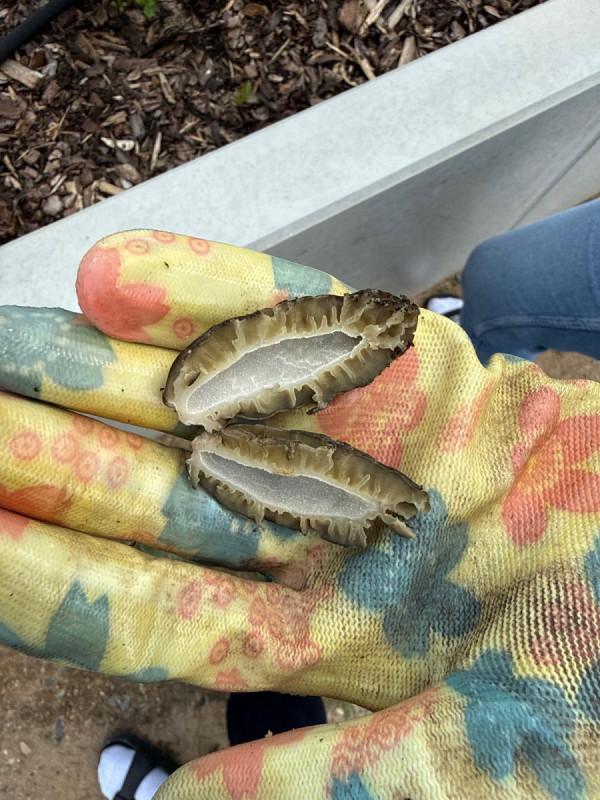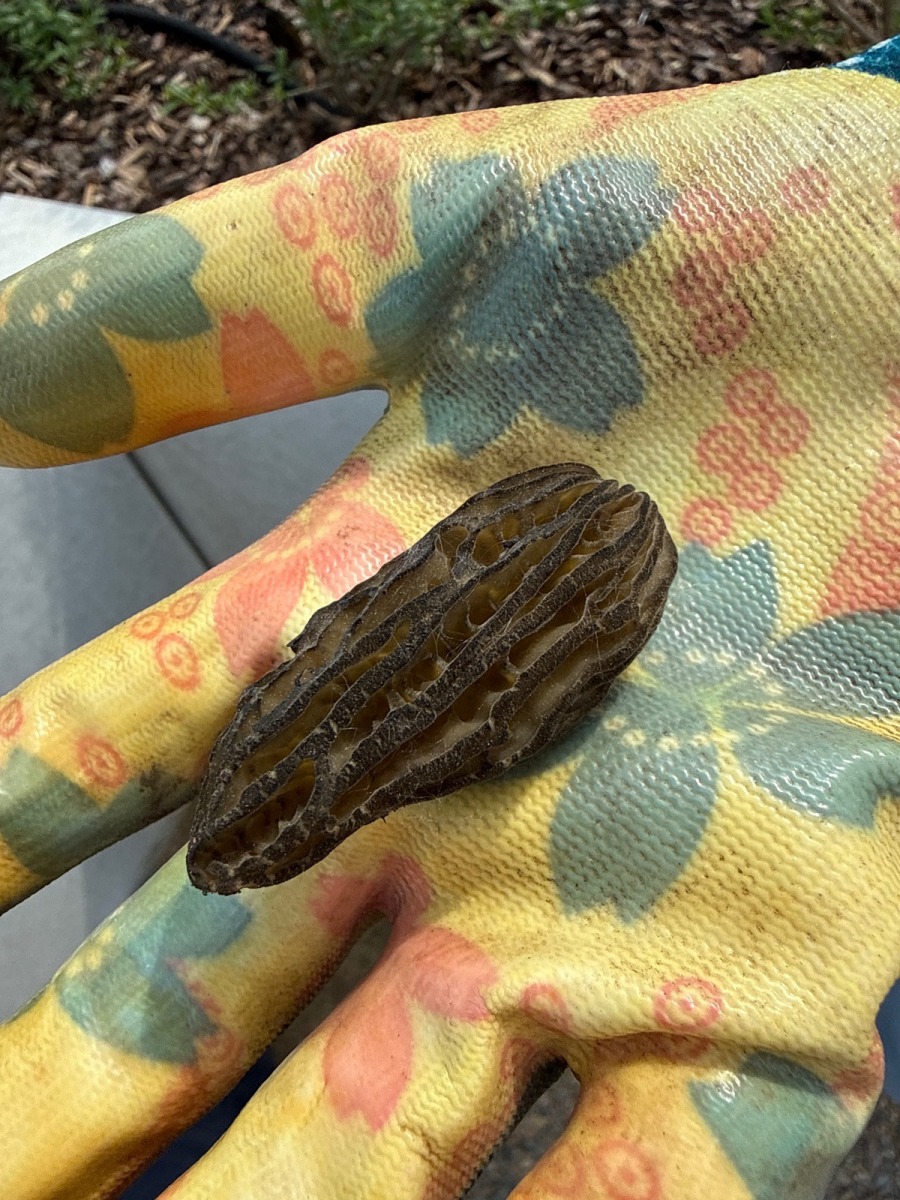 das ist eine große Hand mit einem Exemplar aus dem Spitzmorchelaggregat. Du kannst ja einmal nach Morchella elata googeln.
