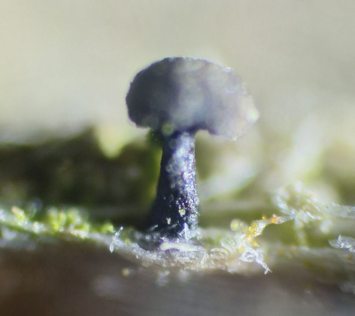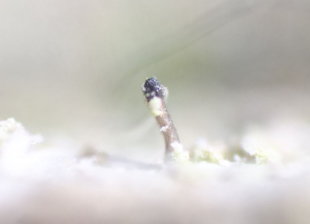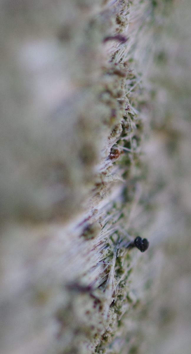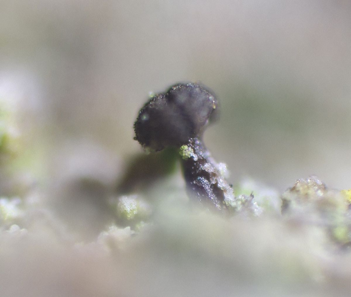 von dem alten Gutsspeicher in Blockbauweise habe ich noch eine Chaenothecopsis, zu der mir nichts einfällt. Mit bis zu 0,6 mm Höheziemlich niedrig, aber stämmig, Kopffdurchmesser bis 0,4 mm, Stiel unten bis 0,17 mm.