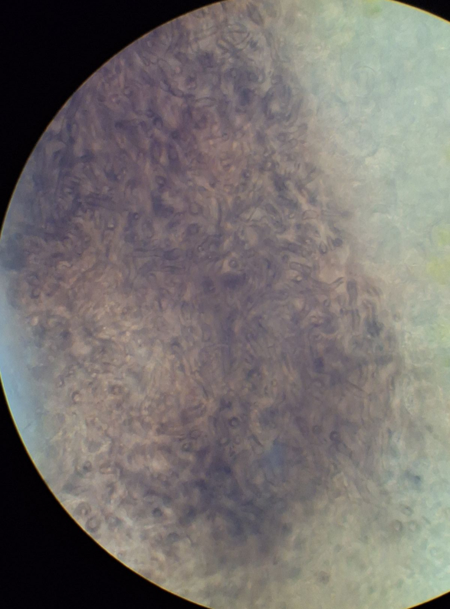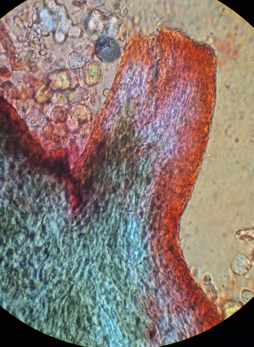 Hier sind die Stielhyphen erwartungsgemäß - die in der Literatur immer wieder genannte Unterscheidung der Hyphen innen und außen vom Stiel sehe ich auch hier nicht