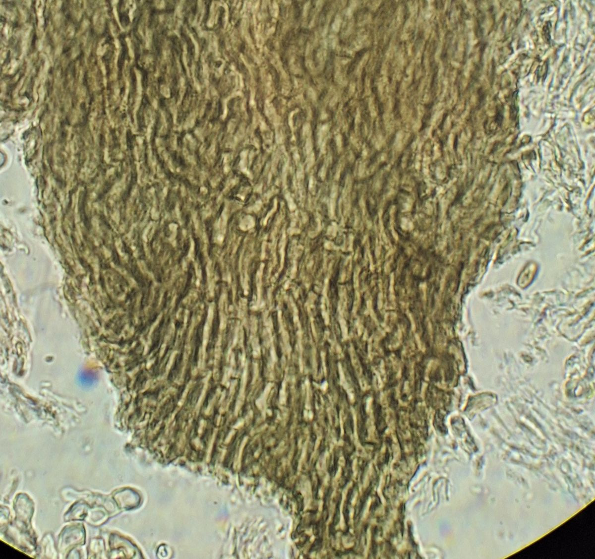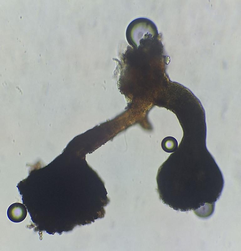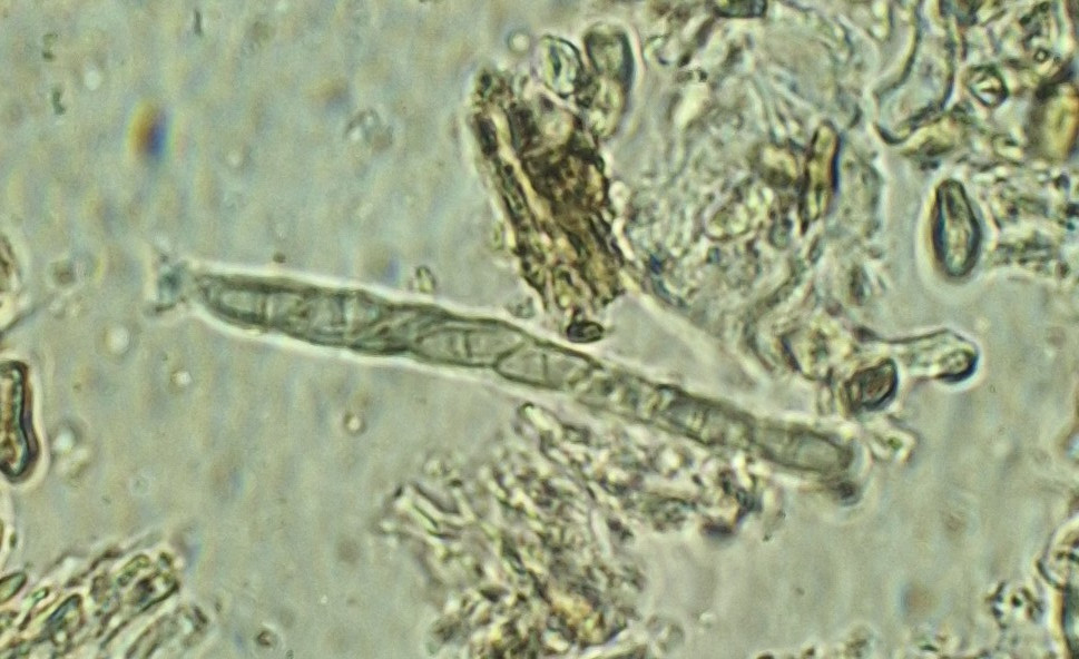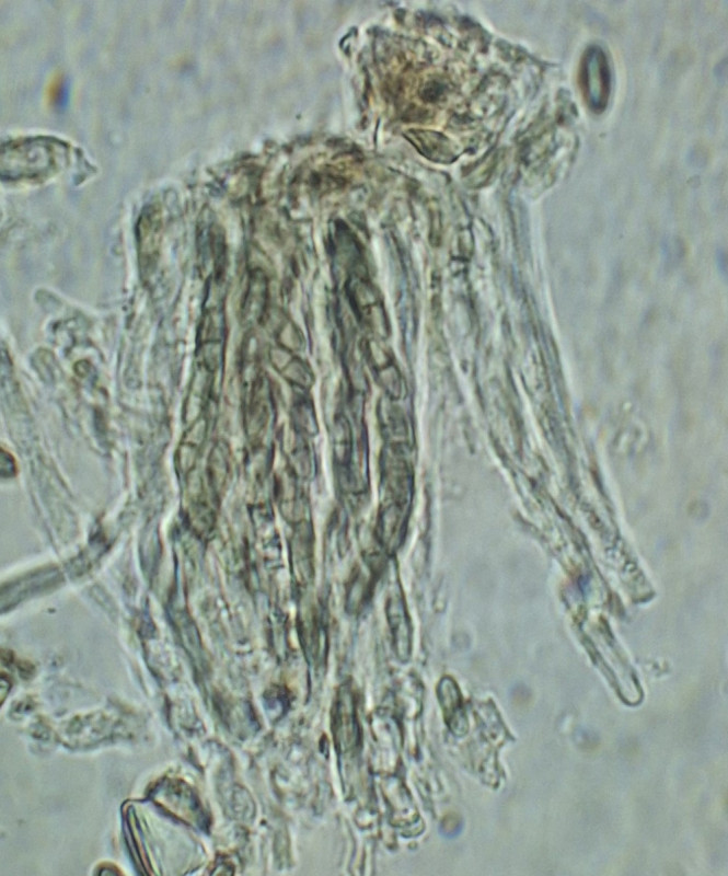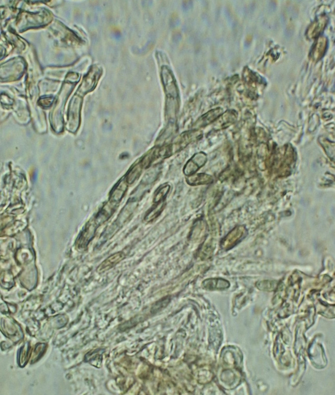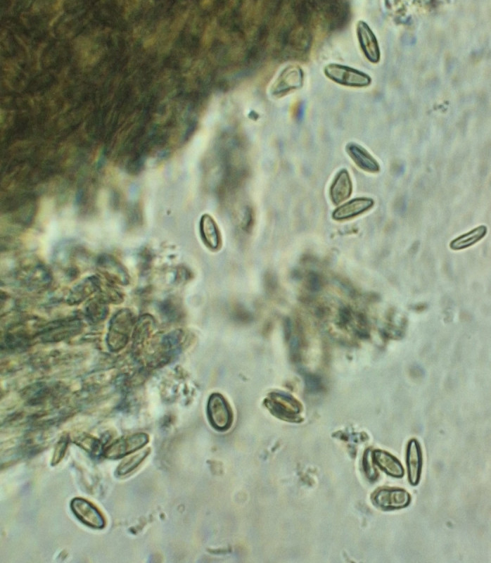 Sporen überwiegend septiert, meist ziemlich deutlich, daneben aber auch kürzere unseptierte, 5,5-8*2-3 µm