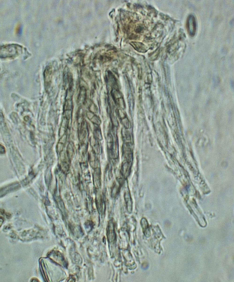 Asci, uniseriat, Sporen teils schräg angeordnet, 40-50*4 µm