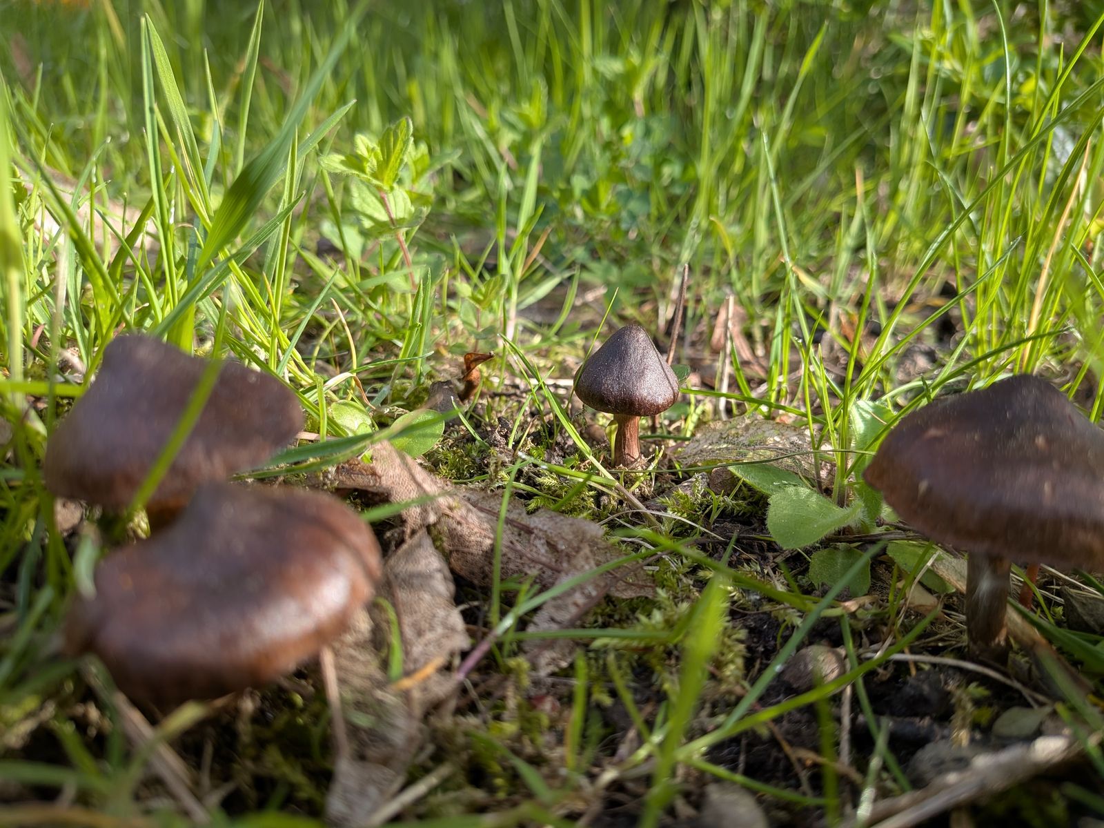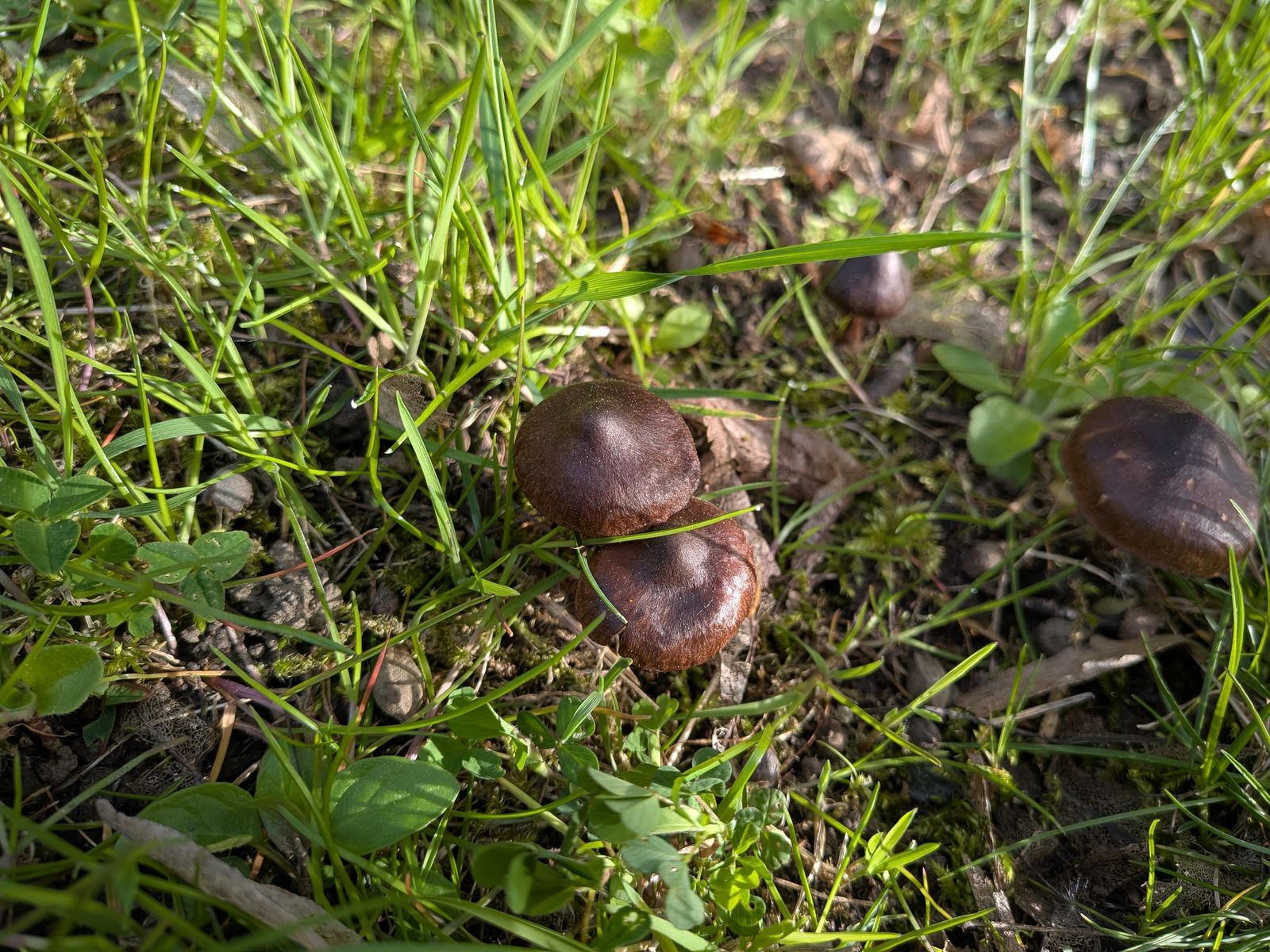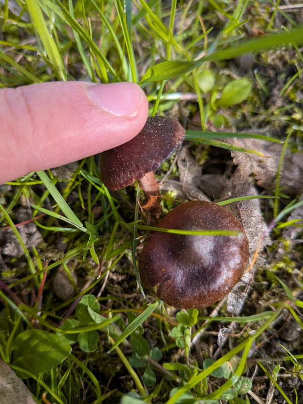 gestern fand ich Exemplare dieser gesellig wachsenden (mutmaßlichen) Cortinarien. Die Hüte messen nicht mehr als max. 2 - 3 cm im Hutdurchmesser. Gefunden hab ich sie auf einer Parkfläche unter Linden. Sporenpulver (in einem Bild sichtbar) rostbraun.