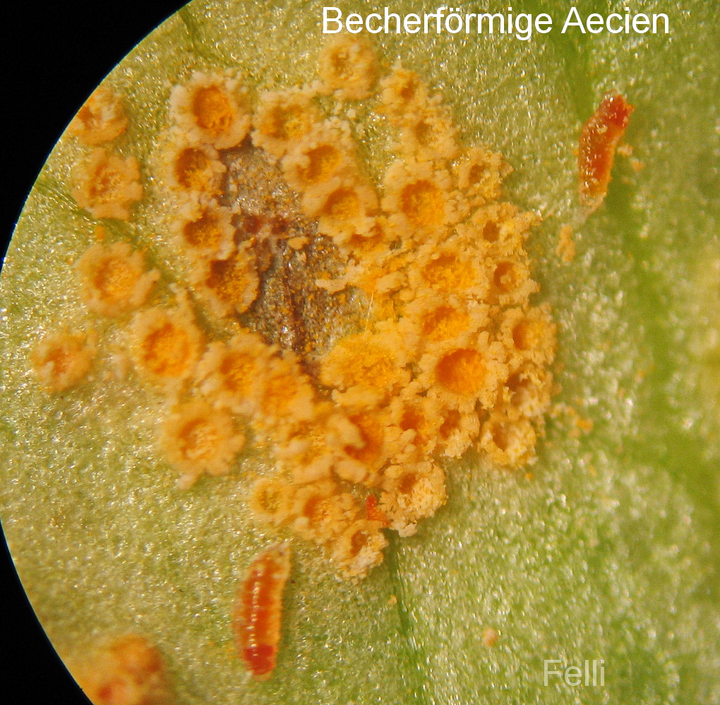 Nach dem die Aecien in kleinen Gruppen verteilt wachsen, ist es möglicher Weise Uromyces poae ?