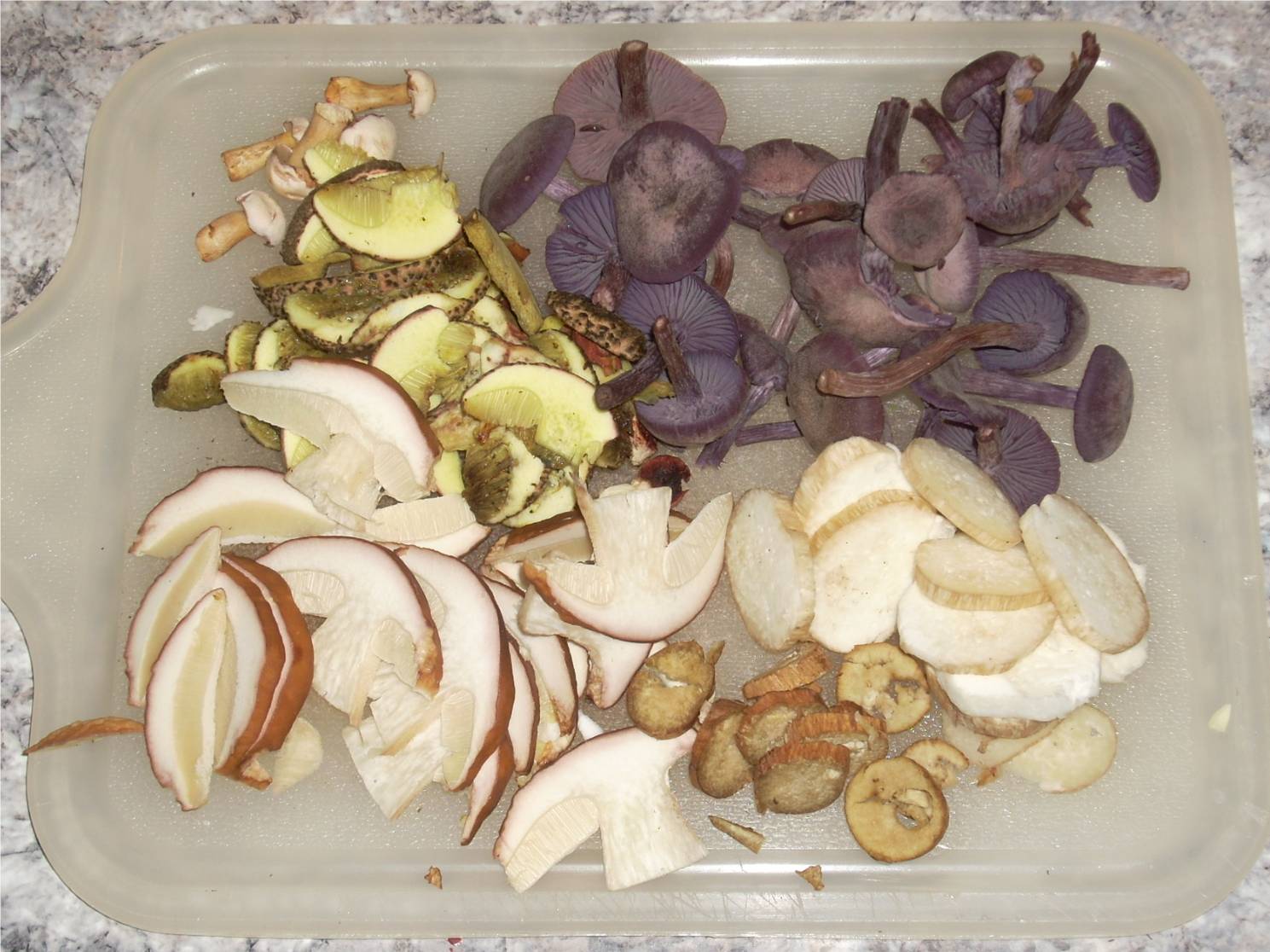 Das Blau ist ja total verfälscht , aber ich denke schon an Violette Lacktrichterlinge und Kornblumenröhrling .