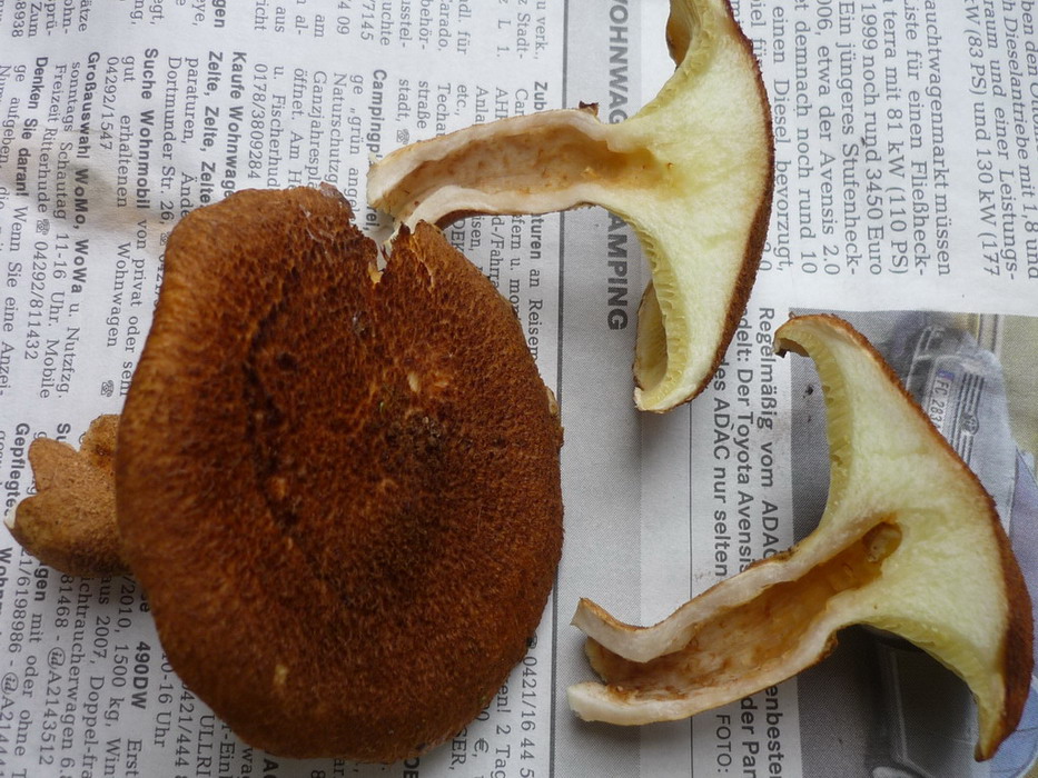 die Röhren sind sehr groß, im Vergleich zu Marone oder Butterpilz