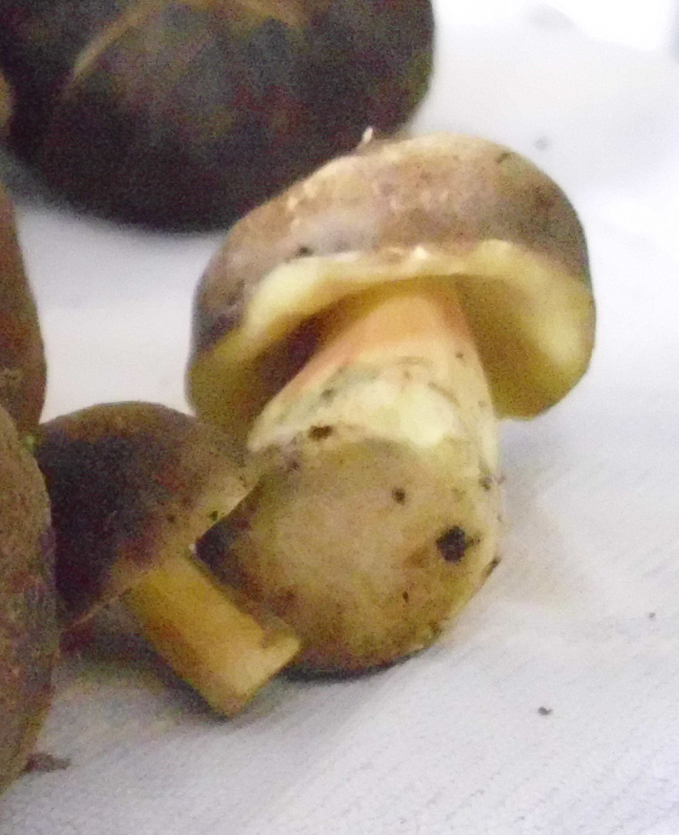 satansröhrling schließe ich wegen der reingelben röhren aus, ebenso den gallenröhrling.