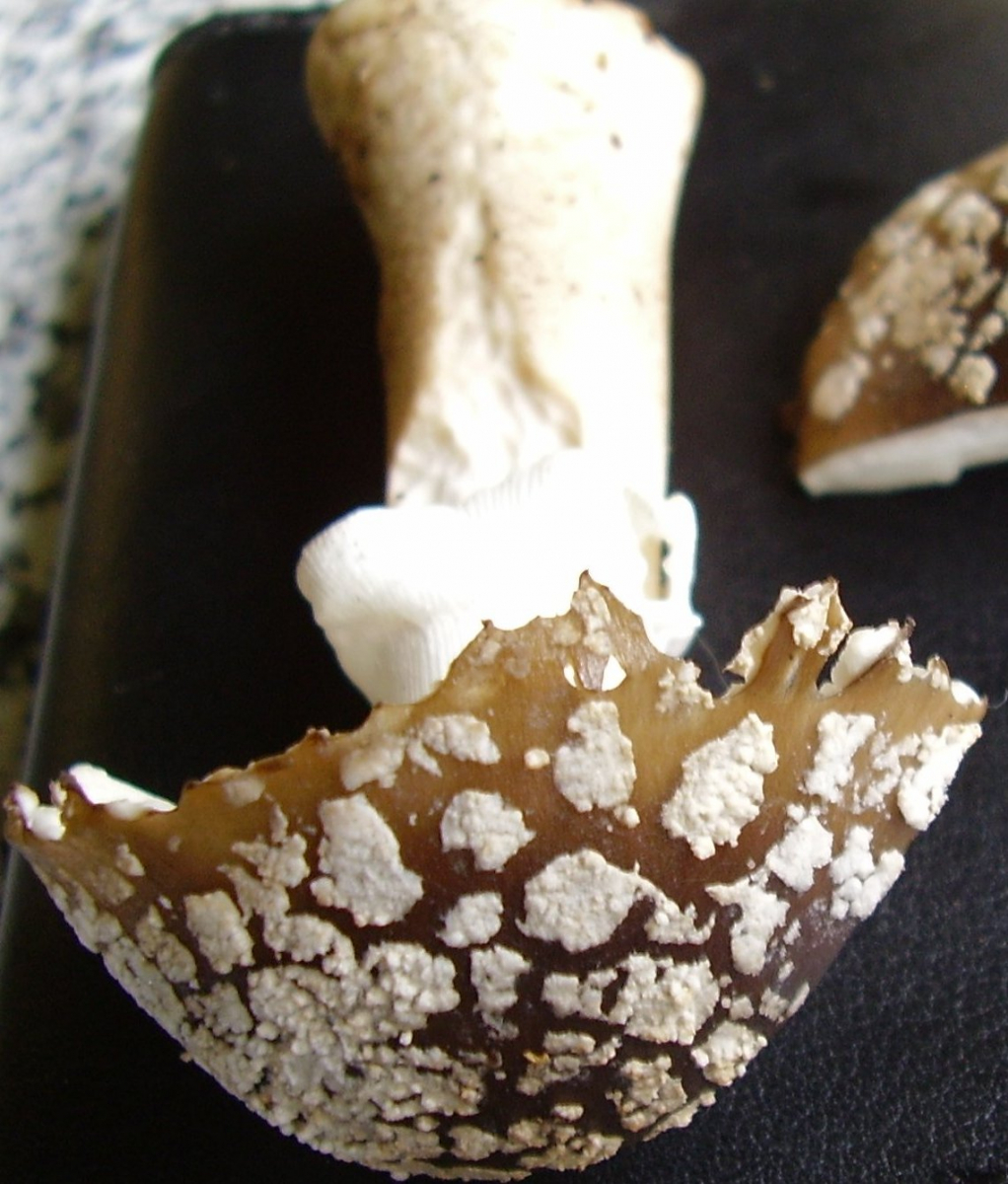 kann mir jemand bei der Bestimmung dieses Pilzes helfen. Der Pilz war sehr dunkel gefärbt und passt so gar nicht zu den Perlpilzen, die ich sonst so kenne. Das fehlende Gelb unter der Huthaut spricht allerdings auch gegen den Königsfliegenpilz, die Fraßstellen waren allerdings schon recht alt, kann es sein, dass das Gelb verblasst ist? Ein wenig Rätsel gibt mir auch die Farbe des Stiels auf, ich nehme an, das liegt an den Verletzungen?