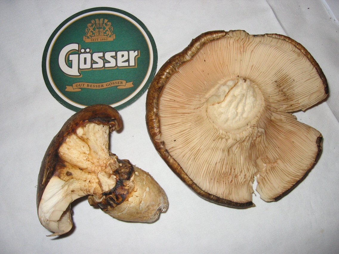 ..nachdem alle greifbaren Pilzexperten und -bücher keine Lösung des Rätsels gebracht haben - hier die Frage an die Community als letzte Hoffnung: Welche Pilze sind auf diesen Fotos zu sehen (gefunden in Innervillgraten, Osttirol, vor etwa 2 Wochen). Leider nur geblitzte Fotos, nicht mehr am Standort, verfügbar...