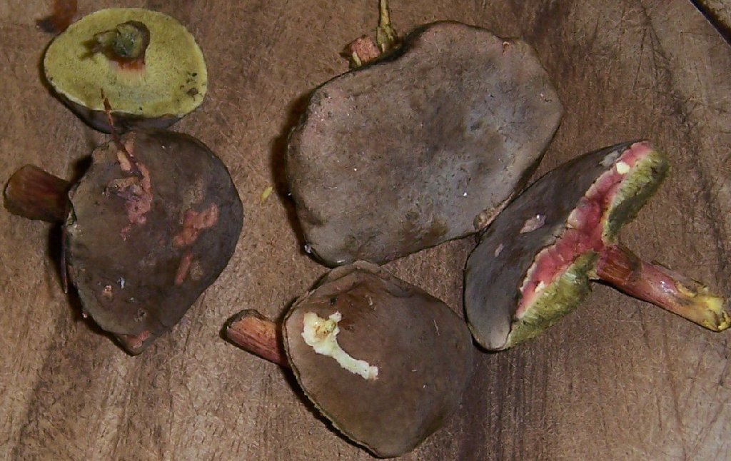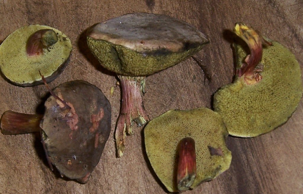 Bild 1 & 2 zeigen Rotfußröhrlinge (Xerocomus crysenteron)