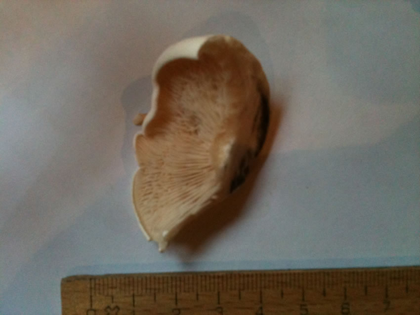 außerdem kann ich noch sagen, dass die lamellen zum stiel hin ein bisschen "hoch gehen", ich weiß nicht, wie ich es nennen soll, also innen sind sie nicht so "hoch", sondern verjüngen sich ein bisschen (könnt ihr mir folgen?)