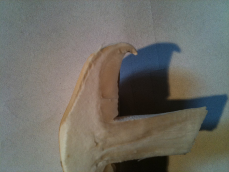 druckstellen und schnittkanten verfärben sich nicht (die dunkle stelle auf dem foto stammt vom messer).