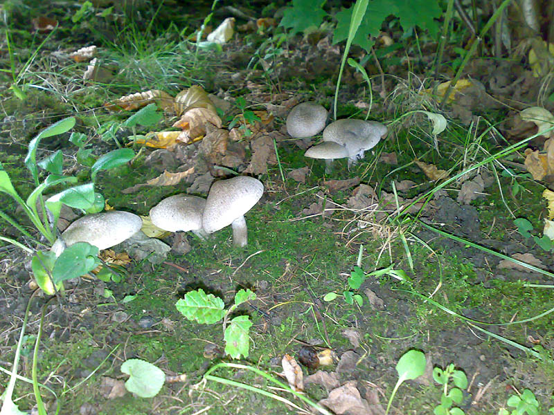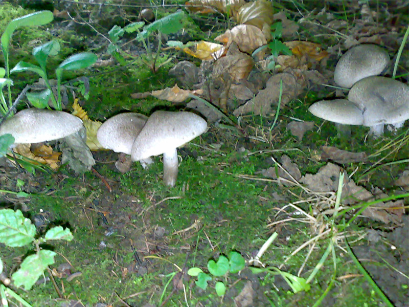Wer kann weiterhelfen? Hab hier zwei Pilzführer liegen, und nachdem was dort drin steht könnten es Schwarzpunktierter Schneckling, Tiger-Ritterling oder Gemeiner Erd-Ritterling sein. Andererseits scheint der schwarzpunktierte Schneckling nur in Nadelwäldern vorzukommen, und für nen Tiger-Ritterling ist der Stiel wohl zu dünn...