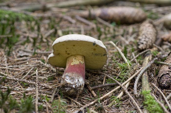 Auf ein mal schri mein Kleiner mit begeisterung "Steinpilz" wo ich näher gekommen bin, war ich selber überrascht, aber nicht 100% sicher was der Kleine gefunden hat. Ist das jetzt ein Schönfußröhrling (boletus calopus) oder Satansröhrling (boletus satanas). Ich tendiere zu Schönfuß wäre aber auch froh wenn ich Satansröhling gefunden habe.