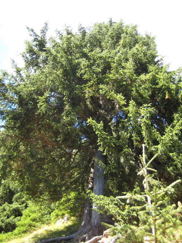Diese Bäume nennen wir "Schermtaxen". Das sind grosse alte Fichten (Tax), die Wild und Vieh bei Schlechtwetter einen Unterstand bieten.