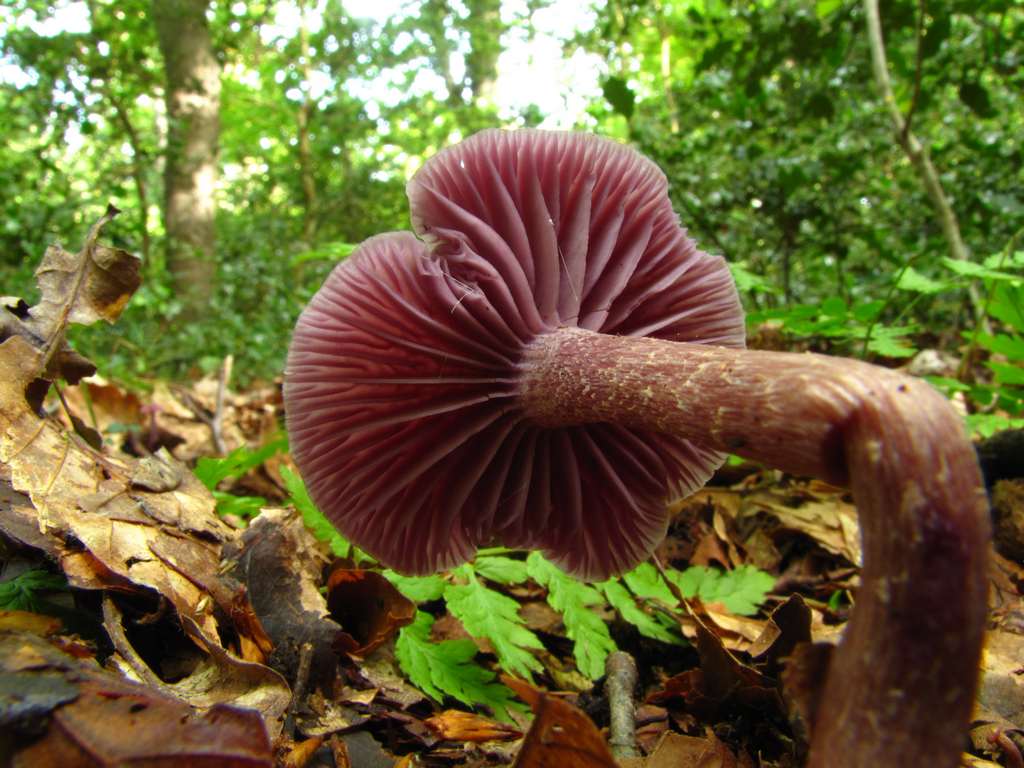 Lila Lamellenpilz mit schwarzem Saft