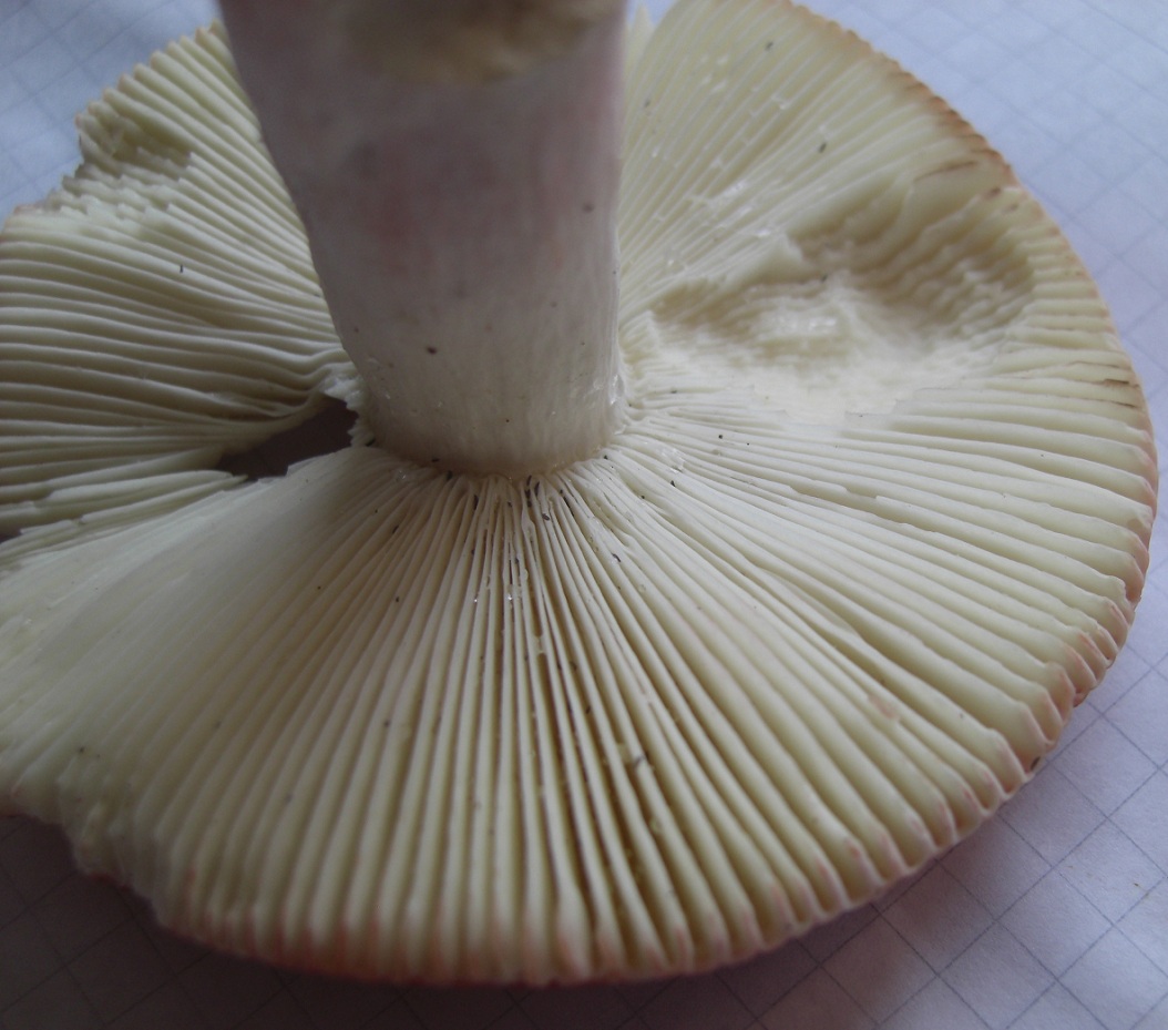 Mit den Fichten hast du recht... das Bier kannst du mir dann an folgende Adresse schicken.... :evil: nee, ist wirklich ein Täubling mit den frauentäublingtypischen elastischen Lamellen. Nicht splitternd. Der Geschmack ist, wie schon erwähnt, mild. Stiel ist halt lila überhaucht. Neben diesem Exemplar war der kleine Bruder, dessen Stiel komplett weiß war.