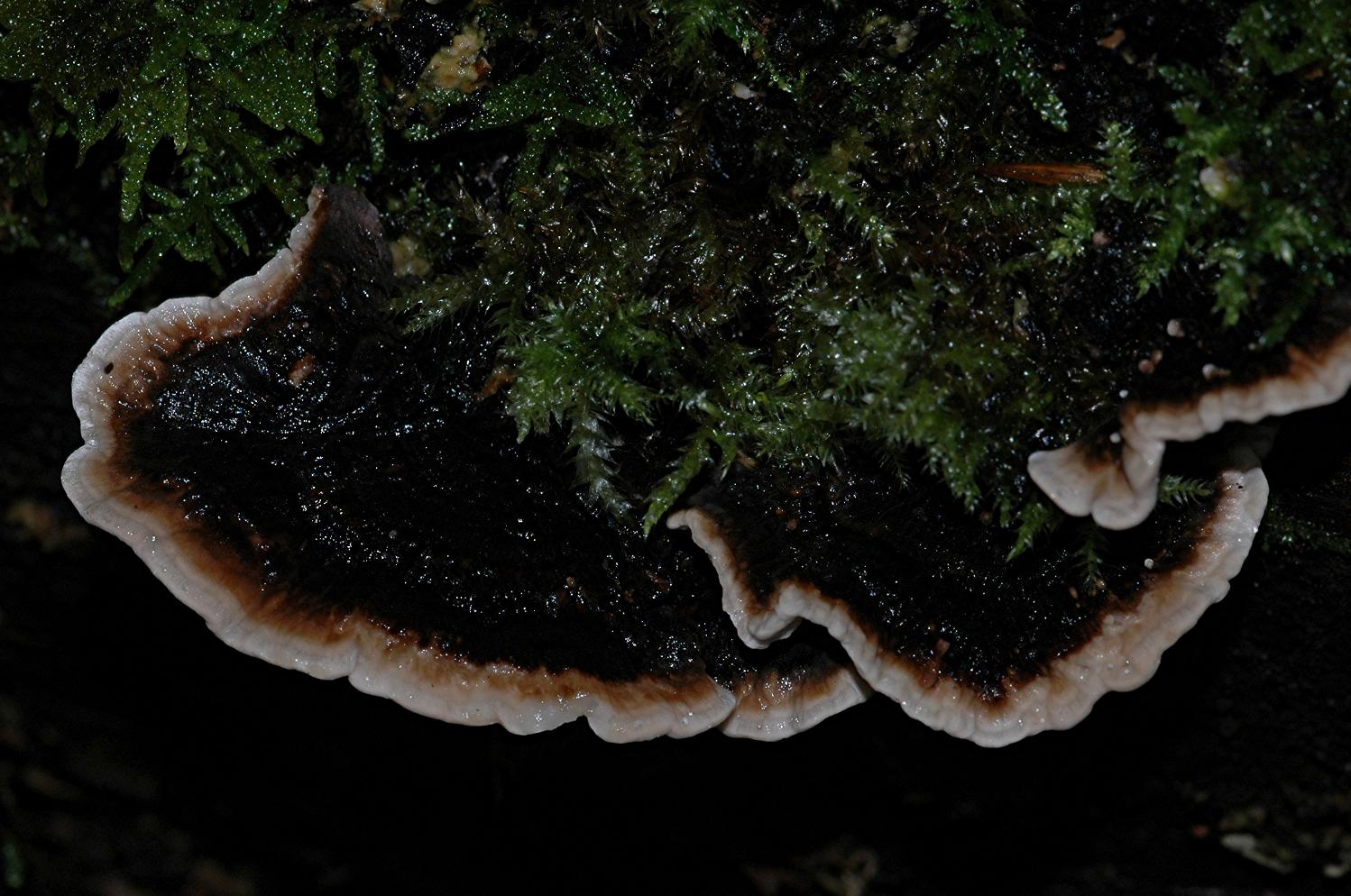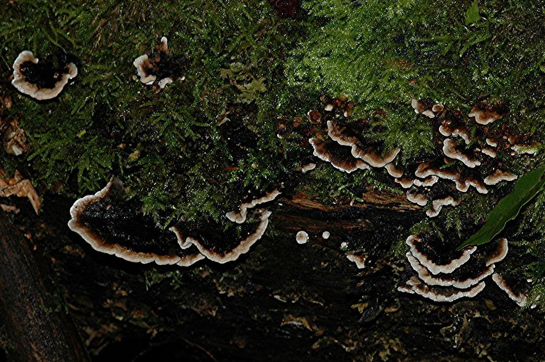 Schmetterlings-Tramete (Trametes versicolor) passt! Substrat ist Gemeine Buche (Fagus sylvatica).
