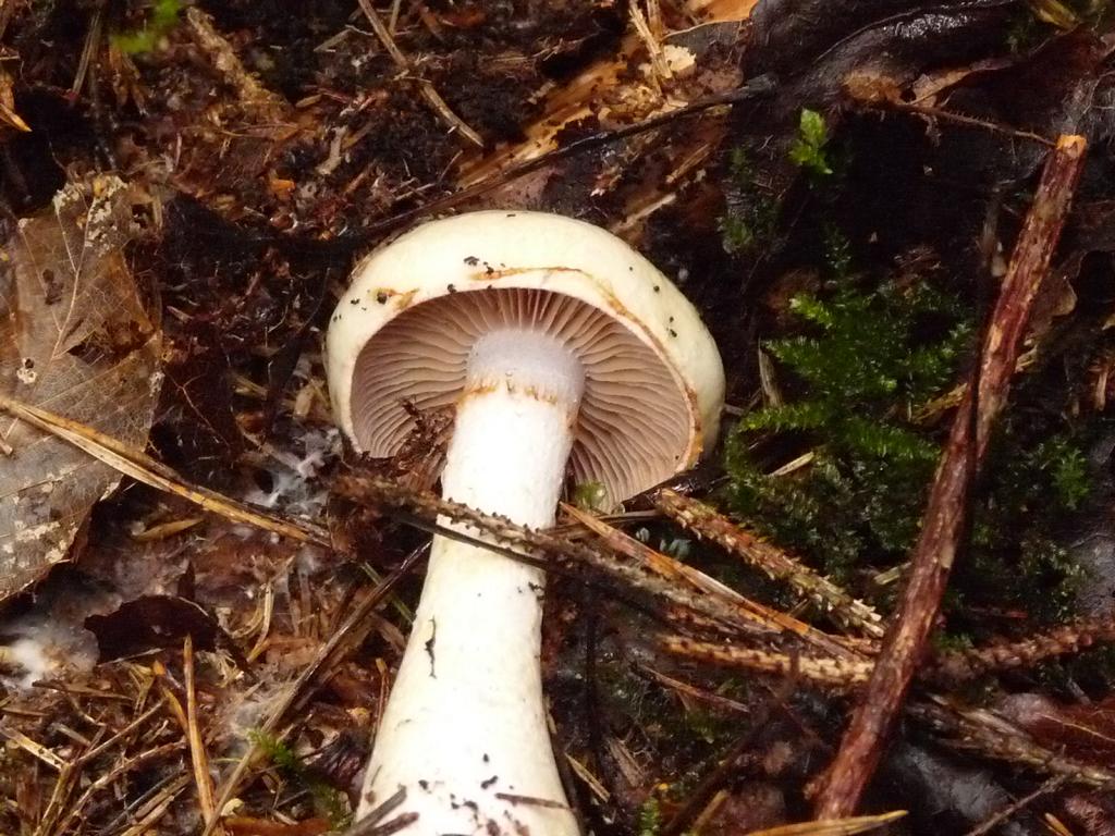 Sieht nach Dickblättrigem Schleimkopf/Cortinarius fraudulosus aus. Ist der Hut etwas feucht klebrig ? Die Lamellenfarbe stimmt leider nicht ganz-müßte mehr ins weißliche ocker gehen-aber wir haben hier schon Fehlfarben in den Bildern durch Blitzlicht gesehen. Standort wäre interessant-event. auf Kalkboden?Ziemlich wahrscheinlich Kalkboden, wächst auf Endmoräne Nähe Waginger See. Vegetation im Wald auch eher basisch.