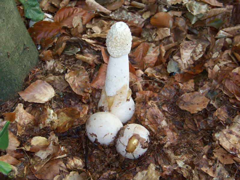 Ihr seid zu dritt und ich habe nicht viel Ahnung, aber ich sags trotzdem: Ich glaube nicht, dass Pilz 5 ein Perlpilz ist. Hutrand ist gerieft und der Stiel scheint mir weiß und unperlpilzmäßig (wie man im Fachjargon sagt :P) zu sein.