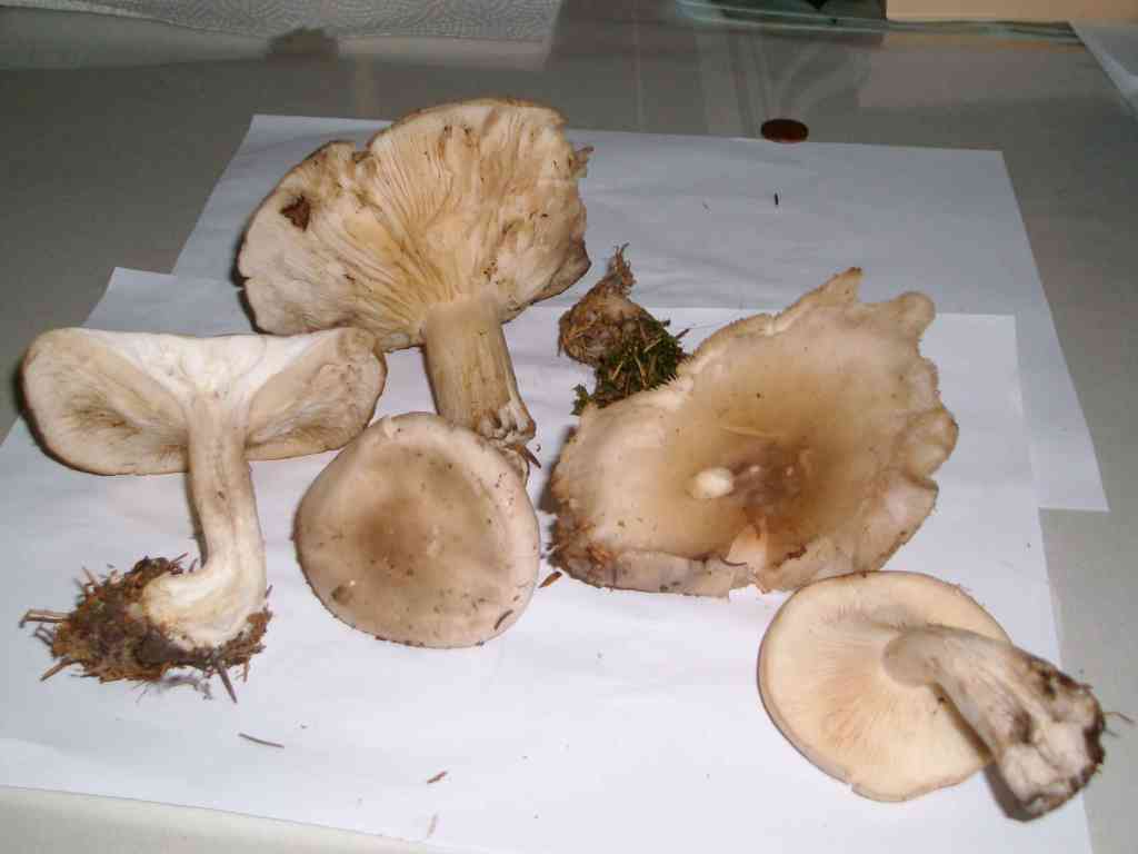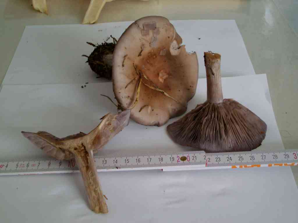 4. Hut bräunlich mit rosa violett stich, Lamellen hellgrau-violett, Stiel weiss gefasert bei Druck wie Lamellen. Einen bildlich ähnlichen Pilz finde ich nicht in meinen Büchern. Von der beschreibung her könnte es ein alterer, Violetter Rötelritterling sein.