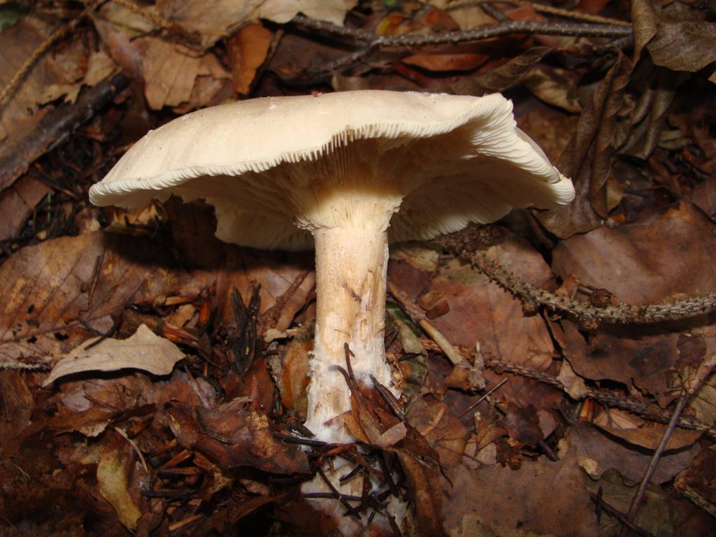Da deine Aufnahme natürlich viele Fragen offen lässt, kann man den Pilz nicht genau bestimmen. Ich rate aber gern: also schau mal unter Nebelgrauer Trichterling/ Nebelkappe =Lepista/Tricholoma nebularis.