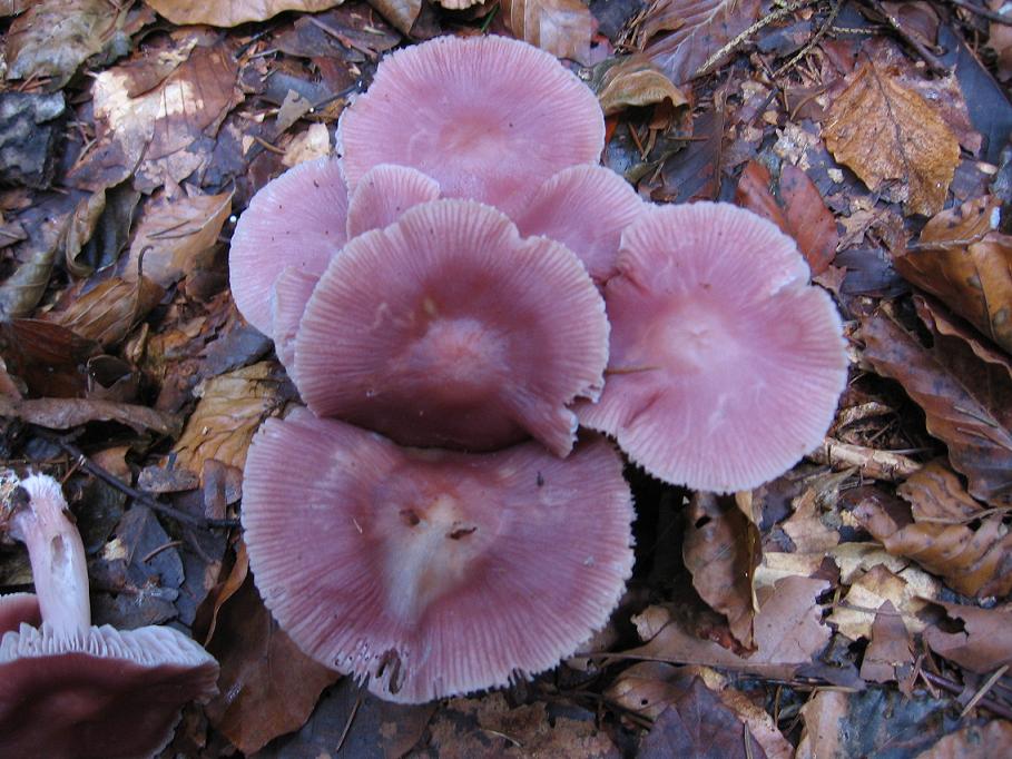 Hut: lilarosafarben,jung kegelförmig, später flach und eher aufgerollt, unregelmäßig gewellt, Buckel, unterschiedl. Zonen der Färbung, durchscheinend, ca. 6cm Ø