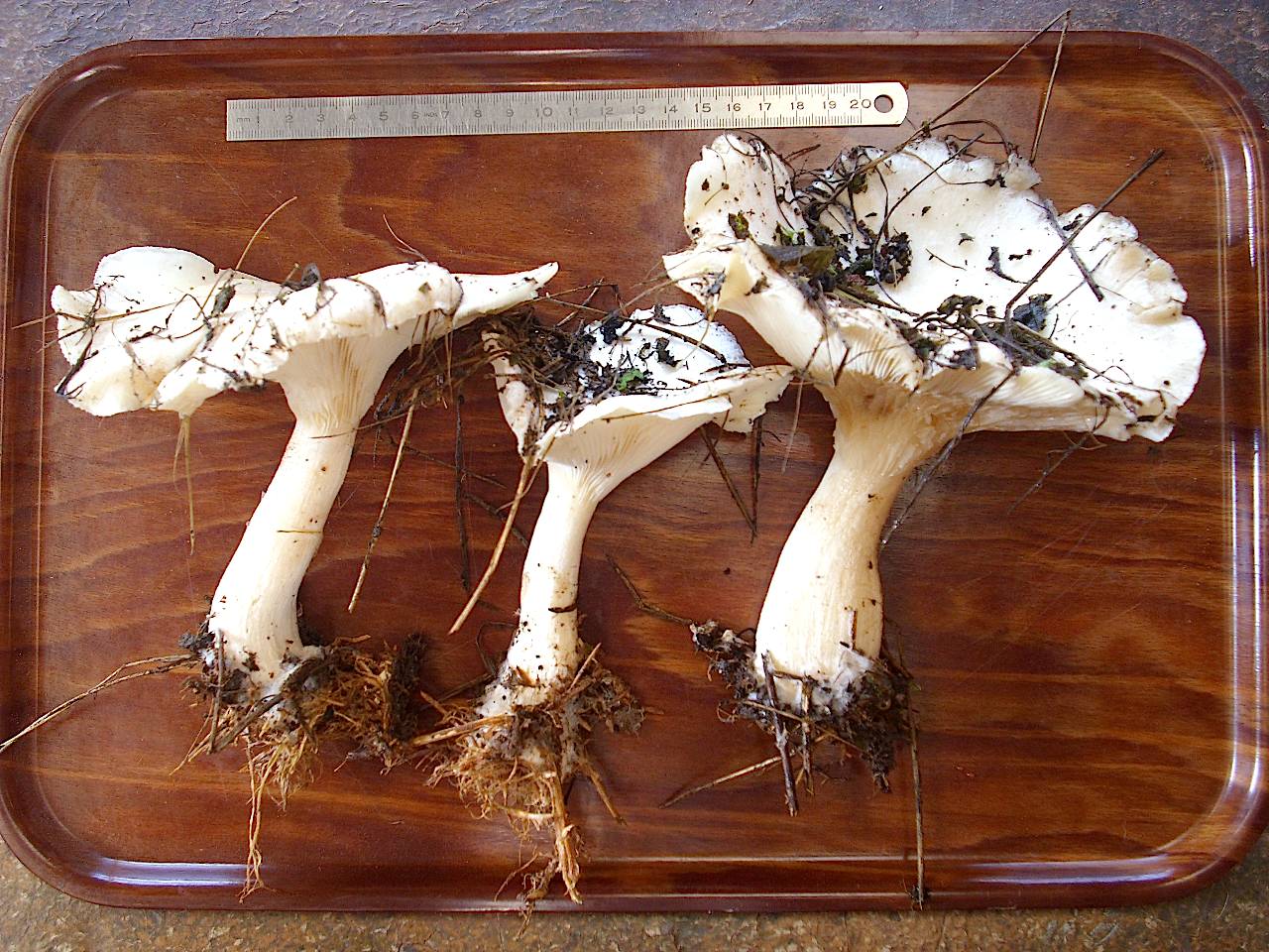 Nach seiner ersten Beschreibung hätte ich eigentlich auf den Mehlräsling getippt, aber bevor ich mich aus dem Fenster lehne, möchte ich gerne noch ein paar mehr Meinungen sammeln. Und fühlt Euch frei: er hat nicht die Absicht die Pilze zu essen, aber möchte seine Enkel auch nicht überflüssigen Gefahren aussetzen, wenn sie in seinem Garten (alias Riesenbiotop mit breitem Bach und mehr :D) zeitweise unbeaufsichtigt spielen.