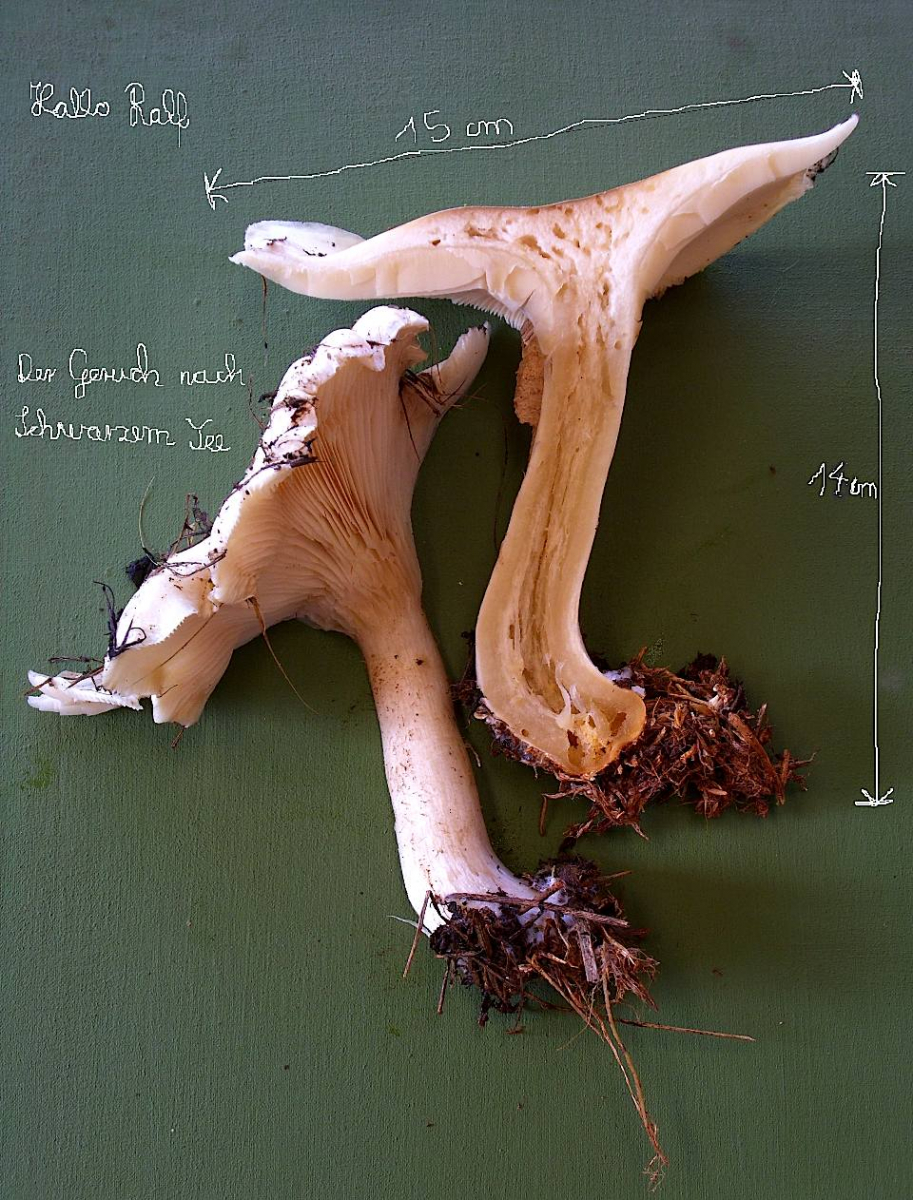 Die Gattung wächst inmitten seiner wilden Wiese, nahe eines Bachlaufs nahe Brennnesseln. Nach seiner Einschätzung erinnert der Geruch an schwarzen Tee. Die Abmessungen sind auf den Fotos ersichtlich - er hat sich da wirklich viel Mühe gegeben ![]()