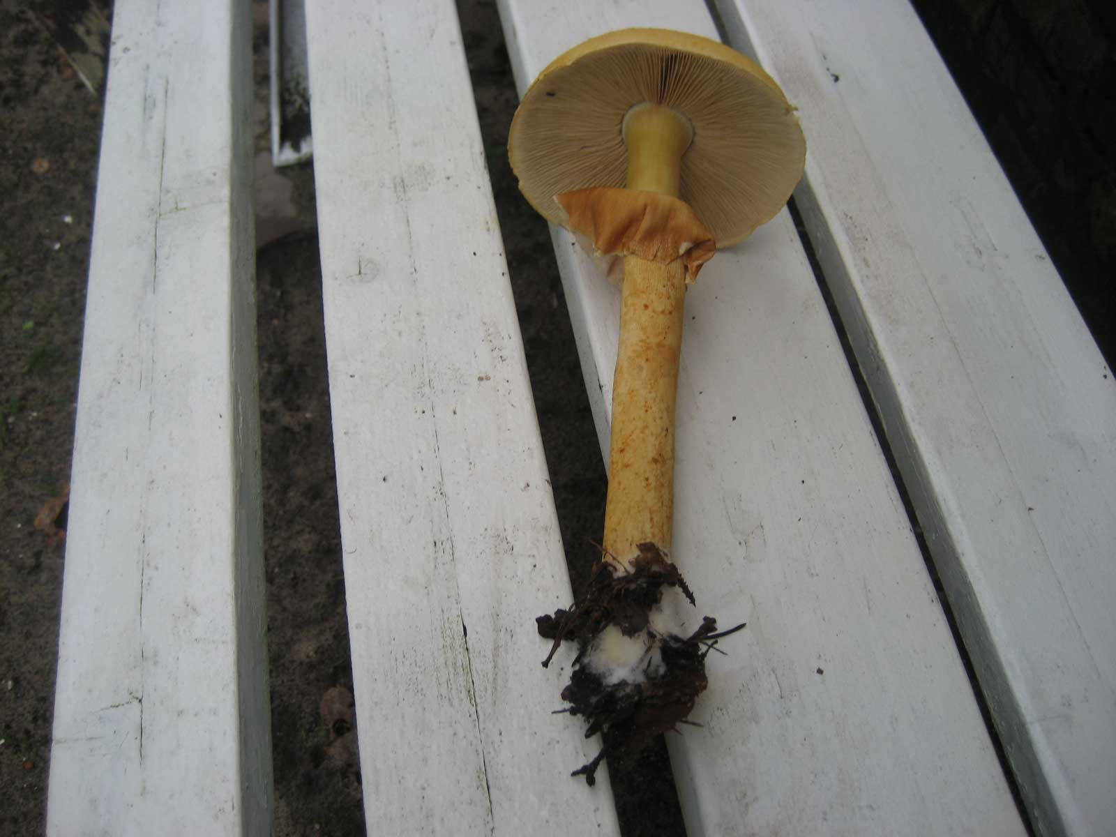 unter einer großen Kastanie im feuchten Boden wächst der gelbe Pilz. Er sieht sehr appetitlich aus aber ist er das auch??