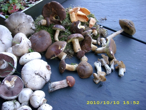 Wir haben viele verschiedene Pilze gefunden . Ich habe auch zwei kleine