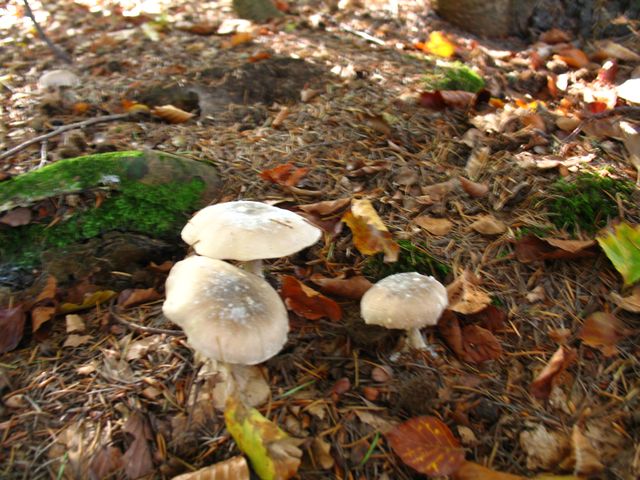 Schlecht zu bestimmen-die weißen Schuppen auf der Huthaut halten mich davon ab, sie zu den Nebelgrauen Röteltrichterlingen= Nebelkappen zu stellen.