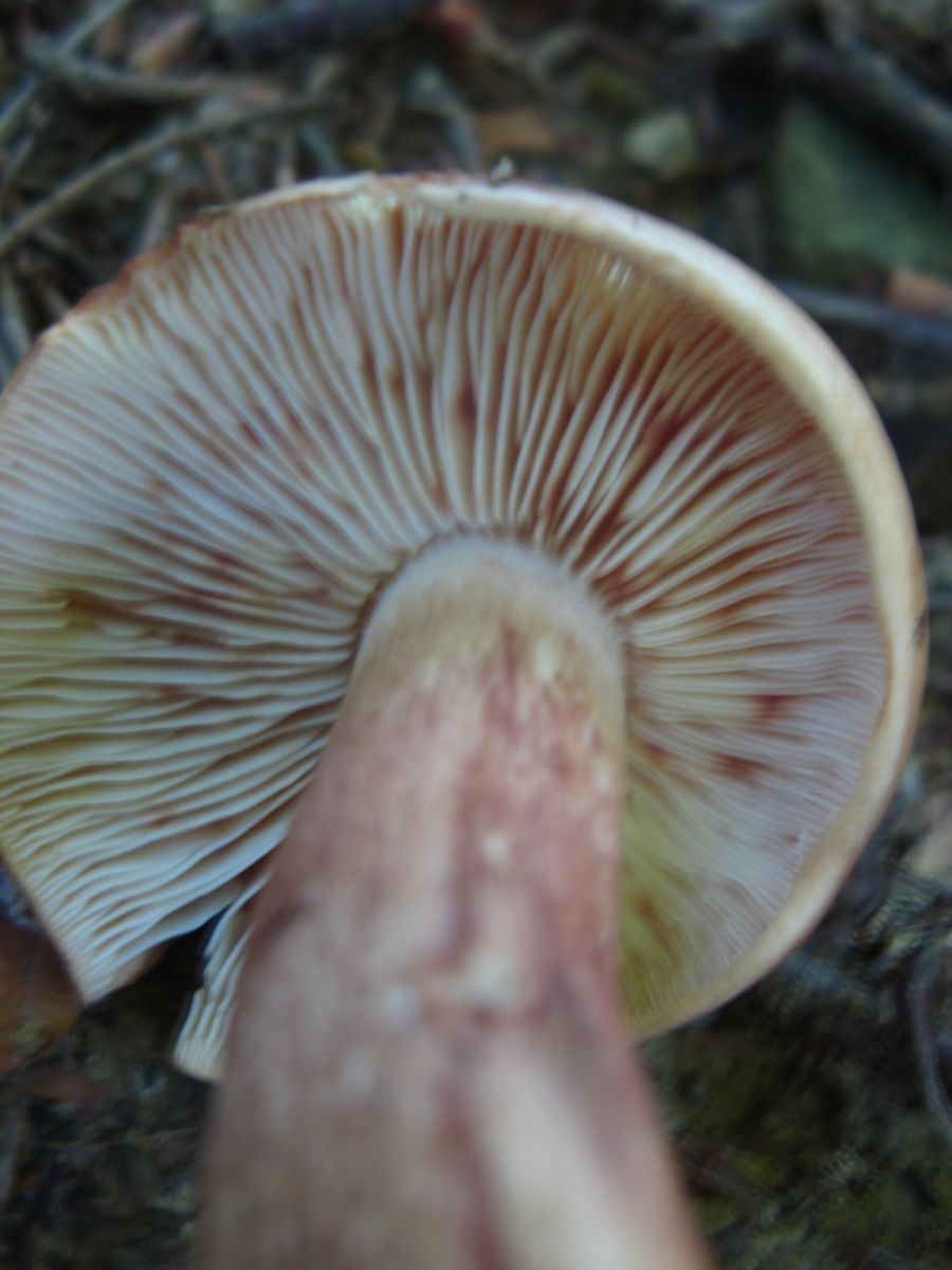 Nr.:5:. Bisher schon einige male angetroffen, aber immer vergessen zu fotografieren.. dabei interessiert mich der Pilz.. Fleisch Fest.. Hut.. eher schleimig.. geruch.. Pilzig *hust