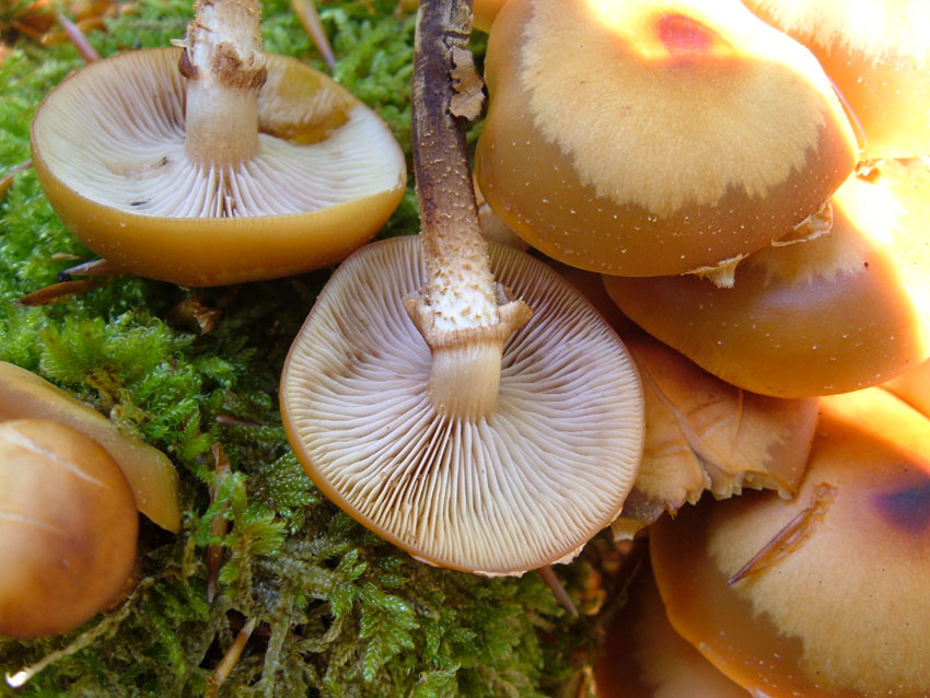 Stockschwämmchensammler aufgepasst! Gegenwärtig sind die Wälder in meiner Gegend "voller" Galerinas (Gifthäublinge)! Stockschwämmchen sind momentan in der Minderzahl!