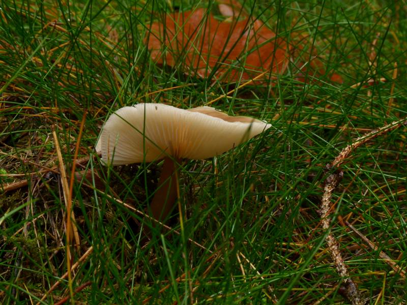 Auch diese hier standen heute als Gruppe im Nadelwaldabschnitt des Lauer Holzes im Regen. Der Hut leicht schmierig, bis ca 10 cm groß. Stiel faserig, Lamellen innen etwas freistehend, spröde. Geruch.