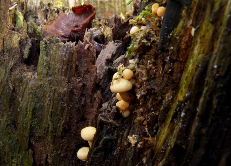 ...gefunden heute im Moos auf einem Baumstumpf wachsend, Dodauer Wald in Ostholstein, nur 1-2 cm klein. Sind die so, oder wird aus denen noch was Größeres? Wer kennt sie?