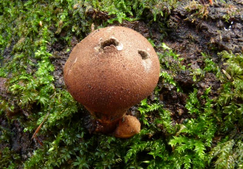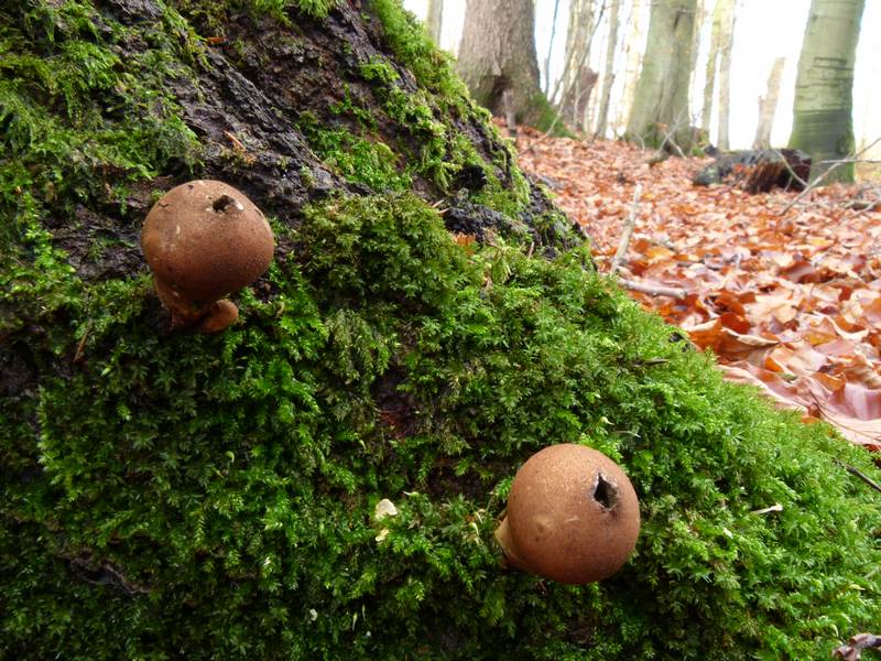 Diese hier hätte ich für Stinkenden Stäubling (Lycoperdon foetidum) gehalten; bei Berührung gaben sie einen hellbraunen Staub (Sporen) ab.