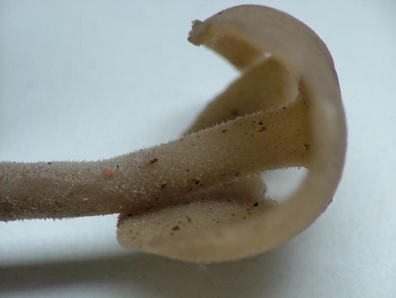 Bei Moser fand ich den einleitenden Hinweis (hier noch unter Cyathipodia = Langfüßer) : Ap. [b]jung kugelig, dann +/- schalenförmig, mit zylindrischen, glattem Siel, Außenseite kleiig bis filzig. Das würde hier doch eigentlich besser passen. Unter H. macropus ist für Hut und Stiel dicht kleiig-filzig genannt.